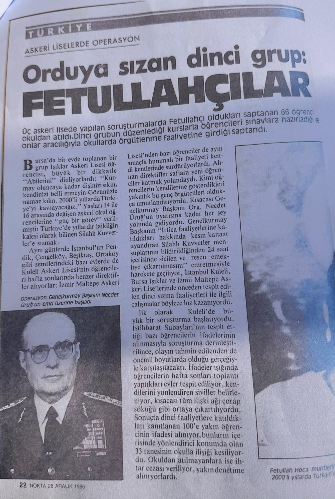 Dergi'nin 28 Aralık 1986'da yayınlanan 51. sayısında Ruşen Çakır'ın 'Orduya sızan dinci gruplar: Fetullahçılar' başlıklı yazısında üç askeri lisede yapılan Fetullahçı olduğu tespit edilen 66 öğrencinin okuldan atıldığına değindi yazısında Gülen hakkında dikkat çekici ifadelere yer aldı.