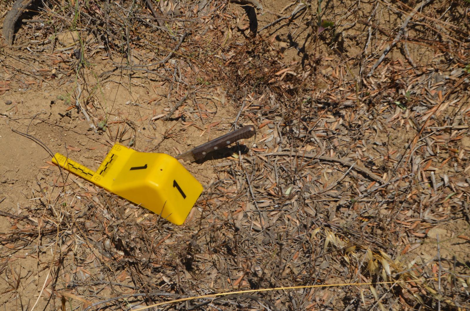 Olay yerinde yapılan incelemede ise ayak izlerini takip eden JASAT timleri; ay çiçeği tarlasında detektörlerle yapılan aramada yerin 25 santim altına görülmüş kanlı bir bıçak buldu.