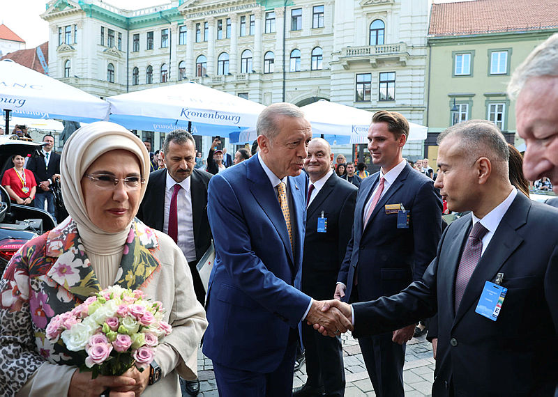 Başkan Erdoğan'a ziyaretinde, eşi Emine Erdoğan, Dışişleri Bakanı Hakan Fidan ve Millî Savunma Bakanı Yaşar Güler eşlik ediyor.