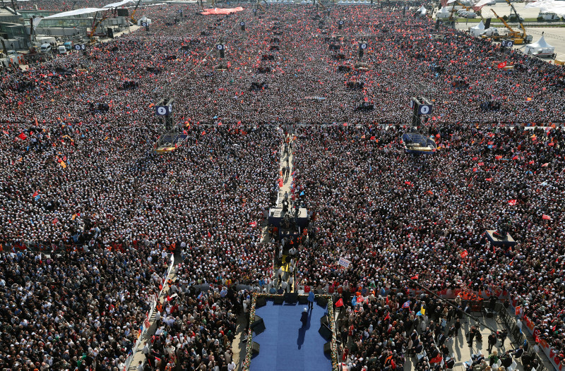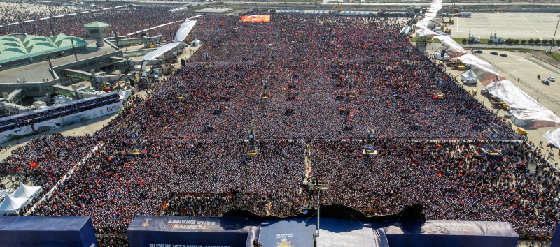 İstanbul bugün haykırıyor. Resmi rakam 1 milyon 700 bin. 14 Mayıs'ta birilerini emekliye sevk edeceğiz. Atatürk Havalimanı bizim için sadece seyahatlerimizi gerçekleştirdiğimiz bir yer değil. Havacılık faaliyetlerinin başladığı ve tek parti CHP'si tarafından bitirildiği yerdir. Benim milletim 14 Mayıs'ta bunlara gereken cevabı verecektir. 7'li koalisyona gerekli cevabın sandıkta verilecek.