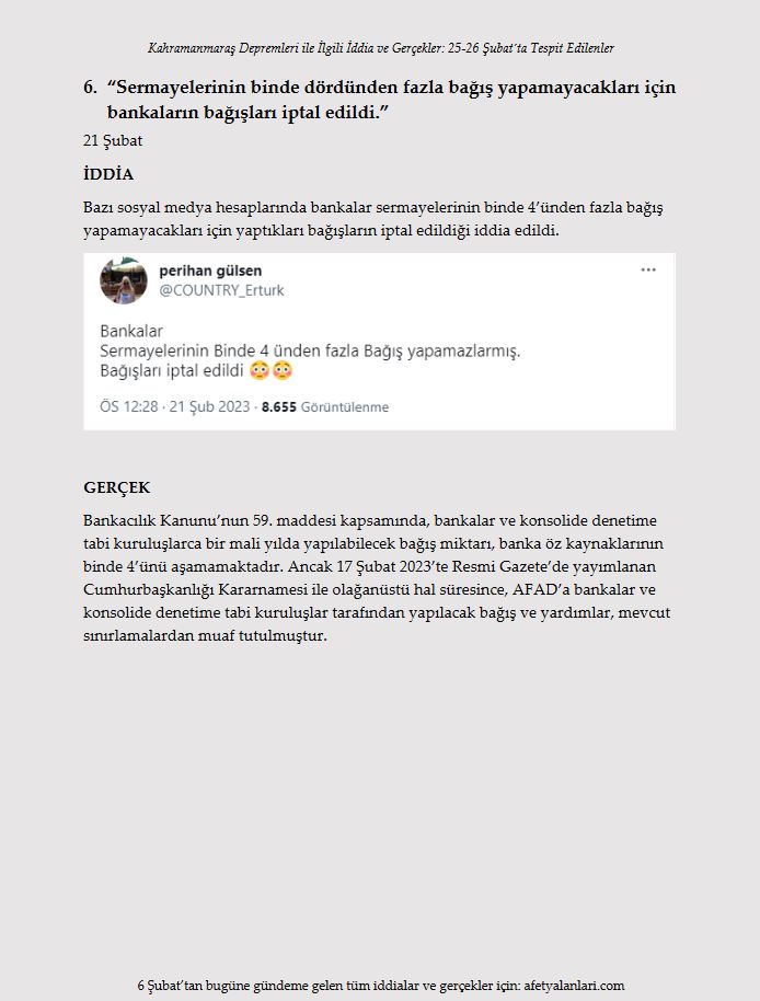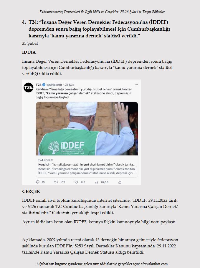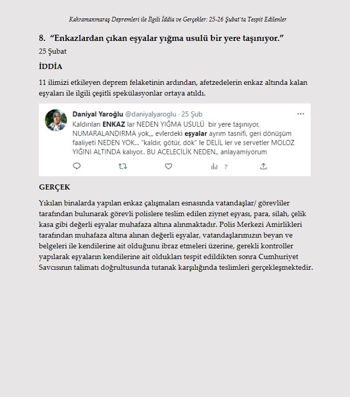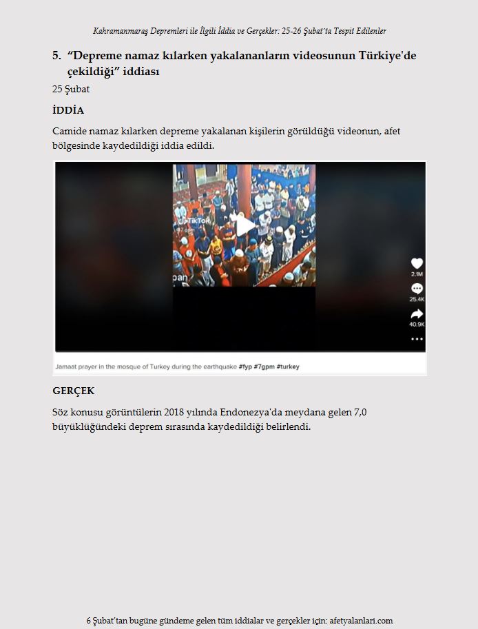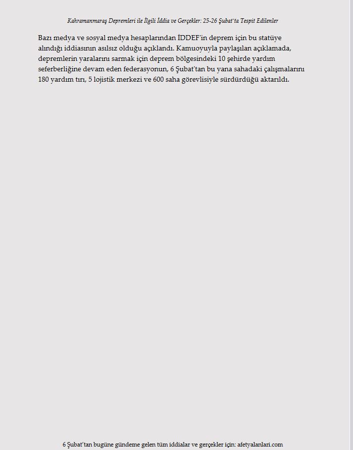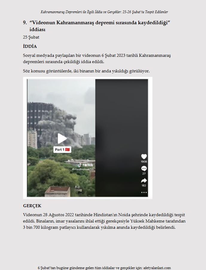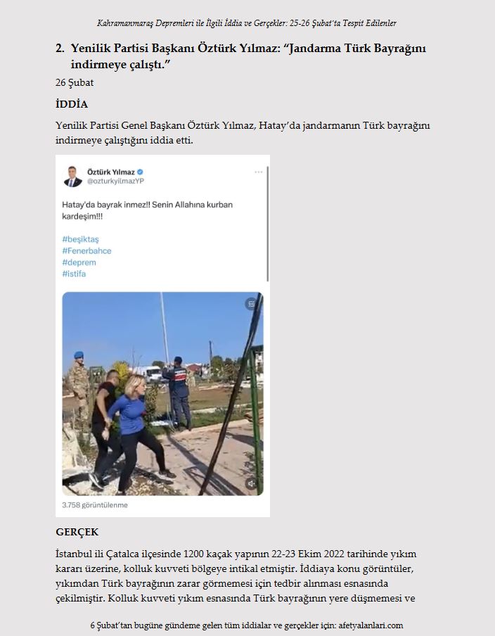 Son dakika haberi: Türkiye, Kahramanmaraş ve ardından peş peşe gerçekleşen Hatay depremlerinin yaralarını hızla sarıyor. Depremlerde 10'u aşkın ilimizde yıkım gerçekleşirken devlet ve millet el ele seferber oldu. Öte yandan Türkiye; algı çalışmaları, provokatif paylaşımlar ve yalanlarla da bu süreçte mücadele etti. Asılsız iddialar ve yalanlar ise gün gün afetyalanlari.com sitesi tarafından ortaya kondu. İşte afet yalanları ve gerçekler...