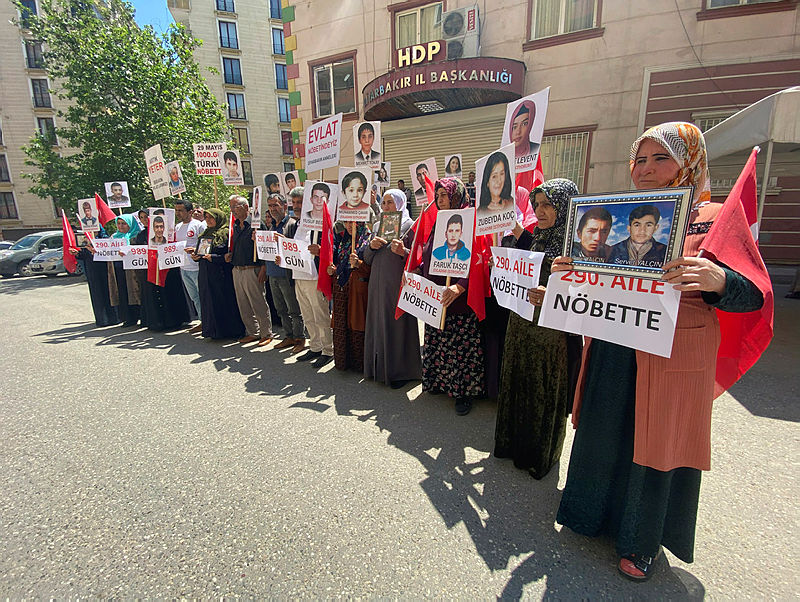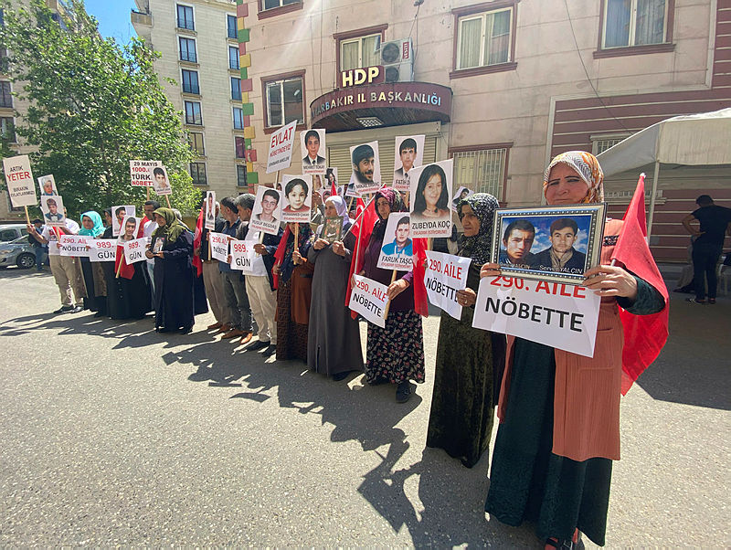 Ya cezaevinde ya da toprağın altındalar. Başlarım sizin Kürdistan davanıza!" diyen anneler, 3 Eylül 2019'da HDP il binası önünde evlat nöbetini başlattı. Üç kişinin katılımıyla başlayan evlat nöbeti kısa sürede çığ gibi büyüdü.