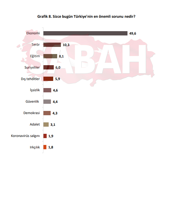 Aynı soruda oluşan tablonun çarpıcı yönü ise şu; Başkan Recep Tayyip Erdoğan'a karşı listede 6'lı masa içerisinde yer alan tüm isimlerin toplam oy oranı bile 33,8'de kalıyor.