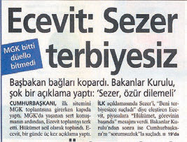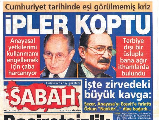 330 milletvekilinin oyunu alarak Cumhurbaşkanı seçilen Sezer, halktan kopuk bir yönetim tarzı benimsemesi, hükümetle uyumsuzluğu ve Çankaya Köşkü'nde uyguladığı başörtüsü yasağı çok fazla eleştirilir. Büyük umutlar beslenen Ecevit'in Başbakanlığındaki koalisyon hükümeti Türkiye'nin ekonomik sorunlarına çözümler üretemez. MGK'da yaşanan tuhaf bir kriz, Türkiye tarihinin en büyük siyasi ve ekonomik krizine dönüşür.