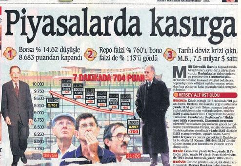 Ekonomi patlama noktasına gelmiş, piyasalar küçük bir kıvılcım beklemektedir. O kıvılcım 19 Ocak 2001 tarihinde MGK toplantısında büyük bir yangına dönüşür. Cumhurbaşkanı Sezer'in Başbakan Ecevit'e anayasa kitapçığını fırlatması "Kara Çarşamba" olarak bilinen Türkiye tarihihinin en büyük ekonomik krizine neden olur.