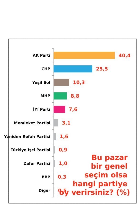 Areda araştırma şirketi 12-14 Nisan tarihleri arasında 10 bin 136 kişinin katımıyla yaptığı Siyasal Eğilim Araştırması'nın sonuçlarını paylaştı. Ankete katılan vatandaşlara "Bu Pazar Cumhurbaşkanlığı seçimi olsa hangi adaya oy verirsiniz?" ve "Milletvekili Genel Seçimlerinde hangi partiye oy verirsiniz?" soruları yöneltildi.