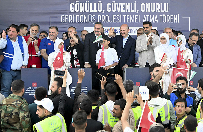 Türkiye'de bulunan 1 milyon Suriyeli için hazırlanan dönüş projesinin ilk adımı atıldı. Suriye'nin Cerablus kentinde 5 bin konutun temel atma törenine katılan Bakan Soylu, "Türkiye'de yaşayan Suriyeli kardeşlerimiz burada yapılan güvenli evlere yerleştirilecek. Konutlar yıl sonuna kadar bitecek" dedi.