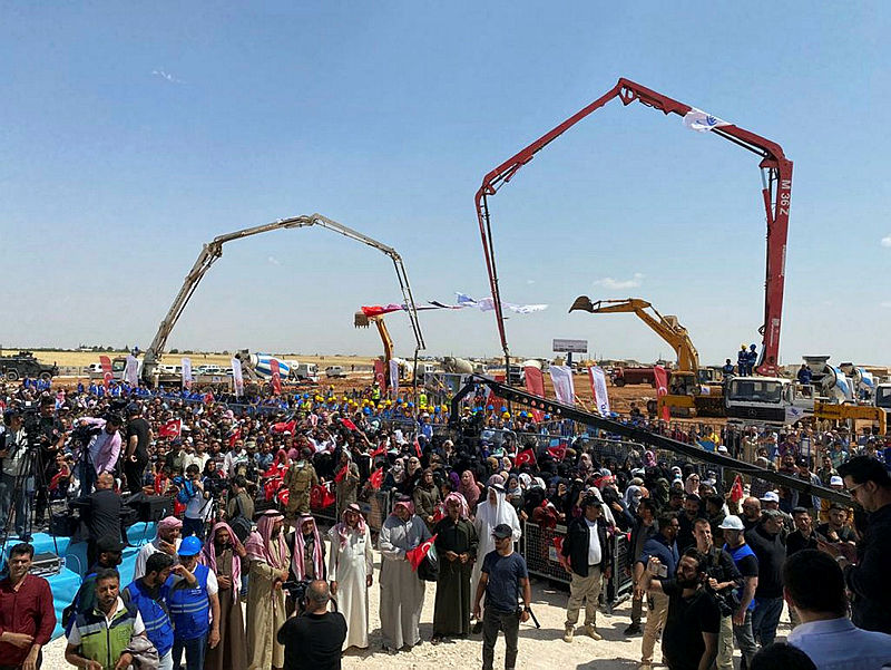 Bu kapsamda, AFAD Başkanlığı koordinesinde Katar'ın katkılarıyla ilk olarak Cerablus İlçesi Ras-ul Cavz bölgesindeki alana 5 bin konutluk bir şehrin inşası için ilk adım atıldı.