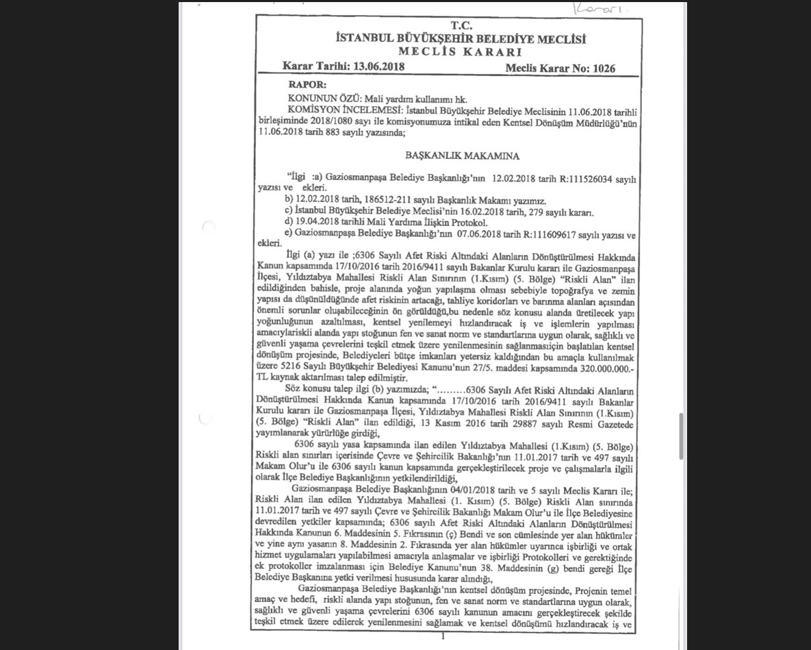 Gaziosmanpaşa'daki kentsel dönüşümün görüşüldüğü 16 Şubat 2018 ve 13 Haziran 2018 tarihli İBB oturumlarında İBB CHP Grubu, kentsel dönüşüme onay veren karara muhalefet etti.