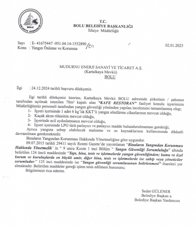 CHP yandaşı gazeteci İsmail Saymaz itfaiye belgelerini yayınlarken baltayı fena taşa vurdu. Saymaz'ın açıkladığı belgelere göre Grand Kartal Otel, 12 Aralık 2024'te restoran cafe açmak için Bolu Belediyesi'ne yangın denetimi başvurusu yaptı.