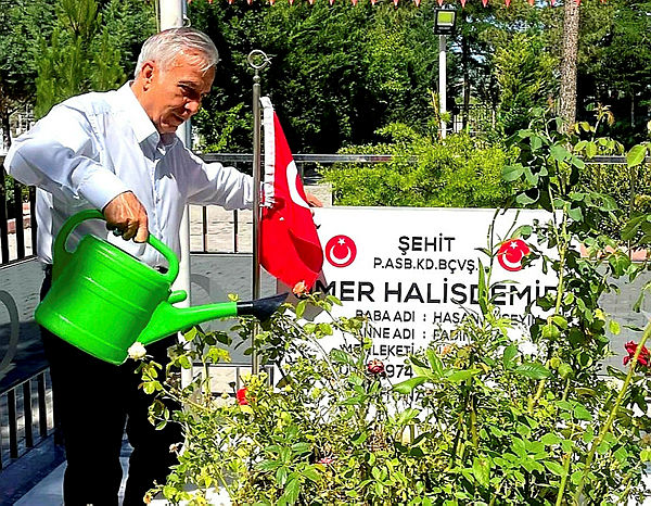 Hain darbe girişimin seyrini/kaderini değiştiren kahraman... 15 Temmuz'un simge ismi... Yiğit... Şehit... Astsubay Kıdemli Başçavuş Ömer Halisdemir... Rahmetle anıyoruz. Niğde... Bor ilçesi... Çukurkuyu beldesi... Şehidin memleketi. Her yıl mezarını ziyaret ediyoruz... Toprağını suluyoruz.