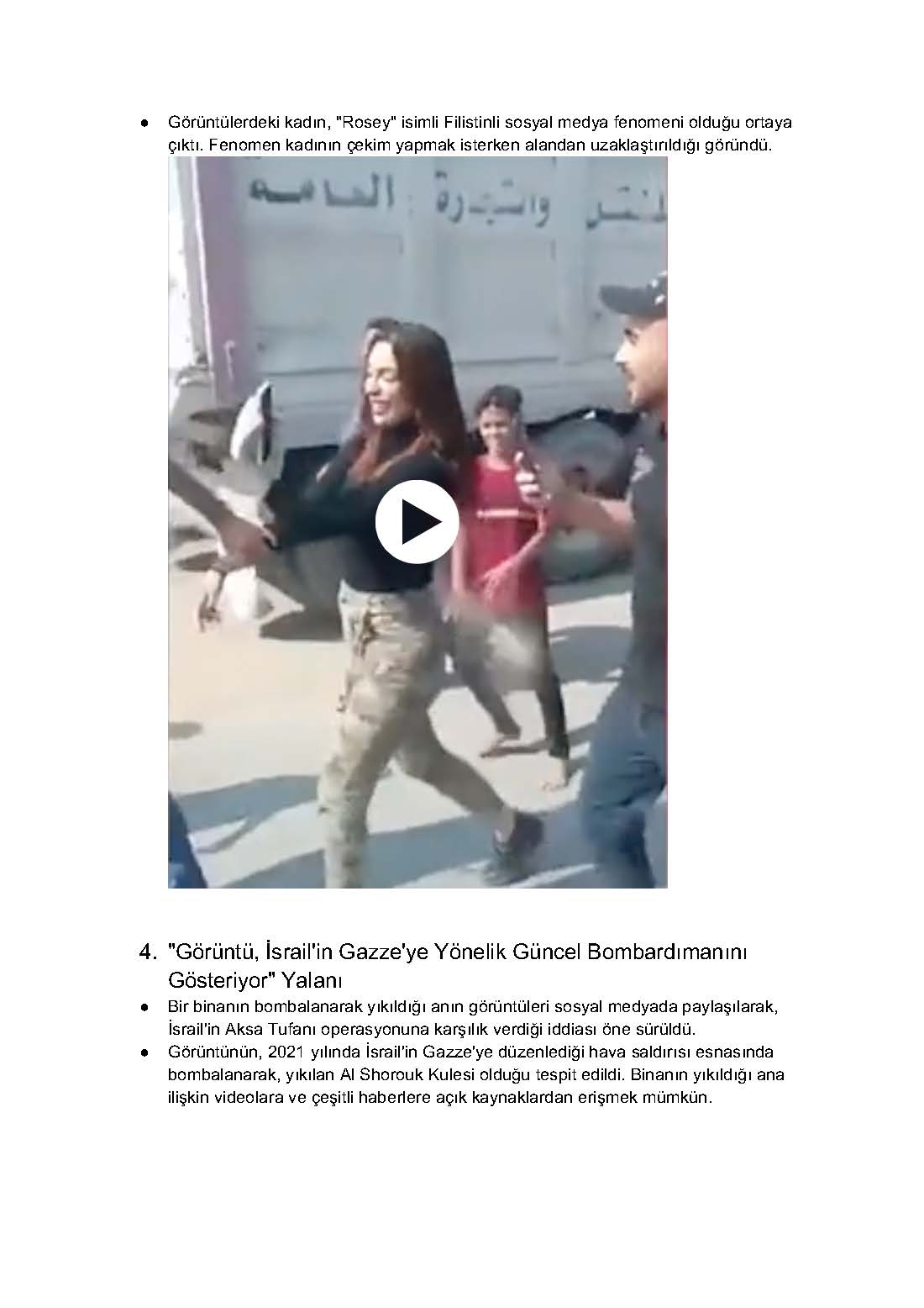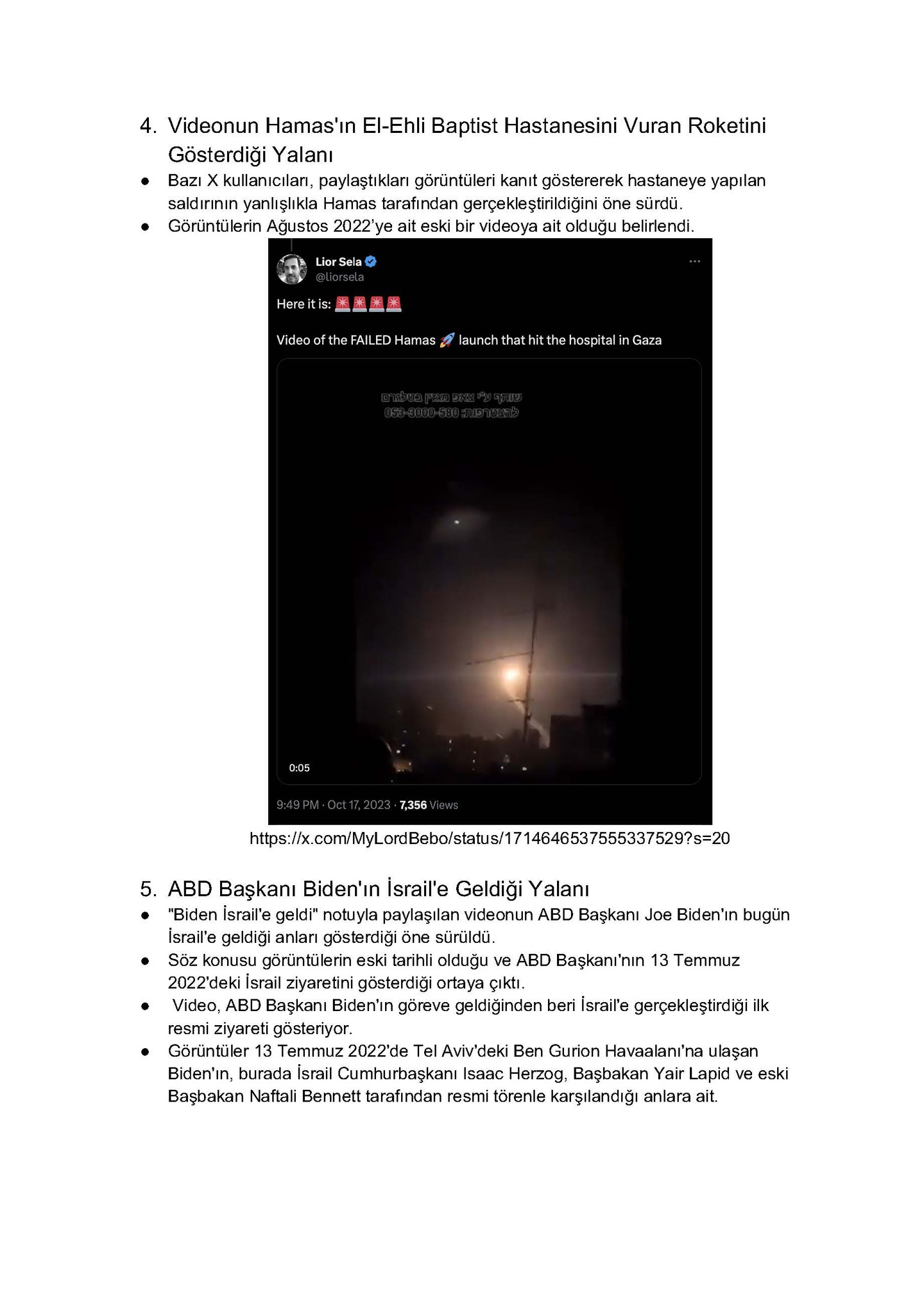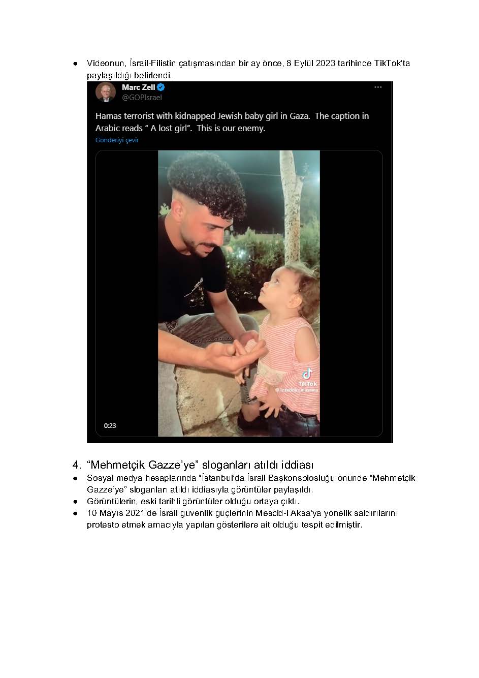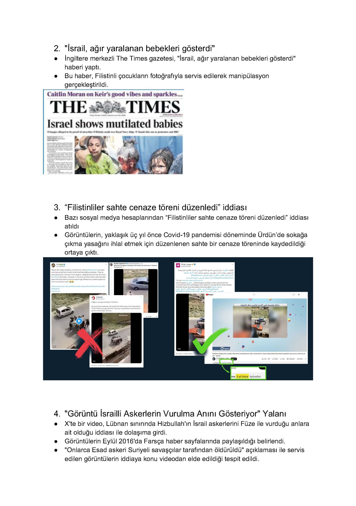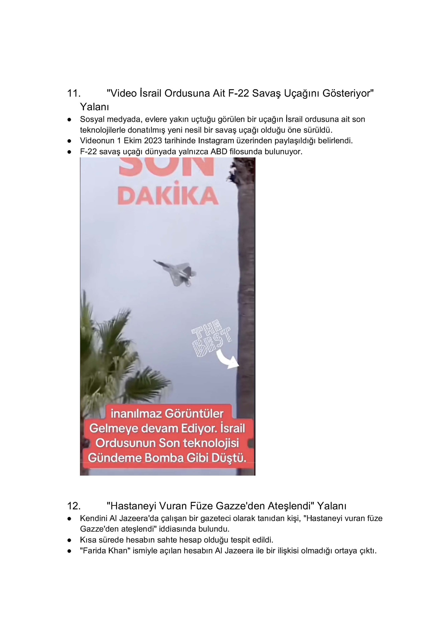 İsrail yıllardır süren Filistin'e yönelik zulmünü son yaşanan gerilimle birlikte zirveye çıkardı. Her gün Filistinlilerin üzerine bombalar yağıyor. İsrail'in Gazze'deki El Ehli Baptist Hastanesine yaptığı bombalı saldırı ise tam anlamıyla yürekleri yaktı. İsrail 500 masum sivili katletti. Katliamda hayatını kaybedenlerin çoğunun çocuk kadın ve yaşlılar olduğu açıklandı. Öte yandan her kanlı saldırının ardından manipülasyonlarla olayları örtbas etmeye çalışan İsrail ile sosyal medyada İsrail'i aklamaya çalışan hesapların operasyonları İletişim Başkanlığı Dezenformasyonla Mücadele Merkezi tarafından tek tek ifşa edildi. İşte Gazze saldırılarında yalanlar ve gerçekler...
