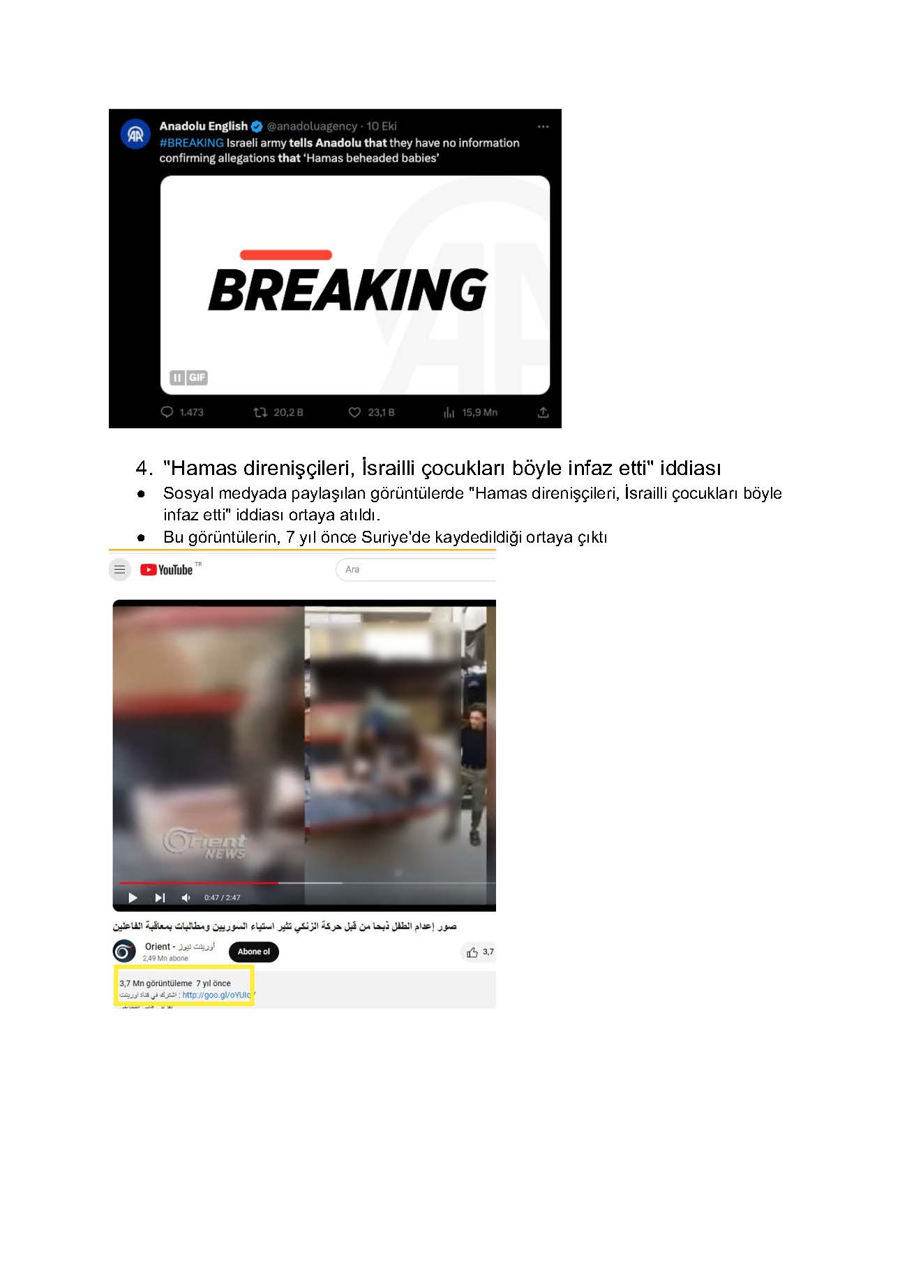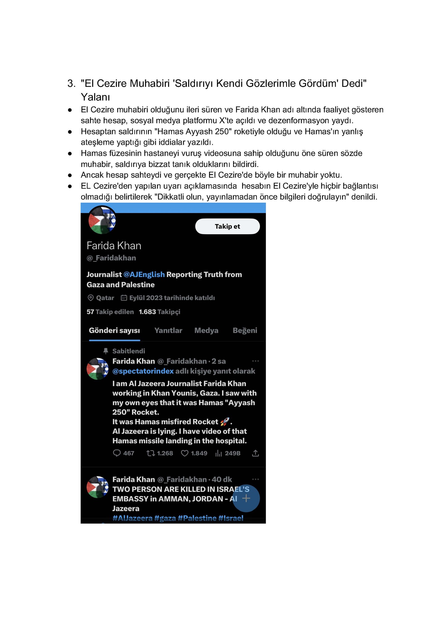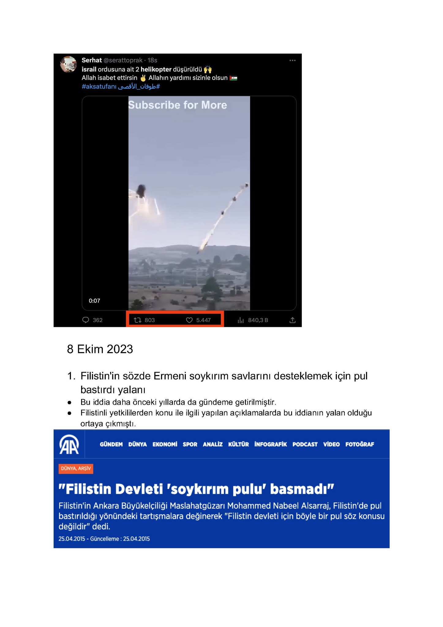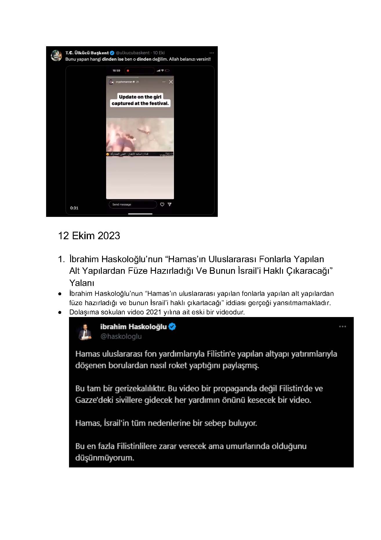 İsrail yıllardır süren Filistin'e yönelik zulmünü son yaşanan gerilimle birlikte zirveye çıkardı. Her gün Filistinlilerin üzerine bombalar yağıyor. İsrail'in Gazze'deki El Ehli Baptist Hastanesine yaptığı bombalı saldırı ise tam anlamıyla yürekleri yaktı. İsrail 500 masum sivili katletti. Katliamda hayatını kaybedenlerin çoğunun çocuk kadın ve yaşlılar olduğu açıklandı. Öte yandan her kanlı saldırının ardından manipülasyonlarla olayları örtbas etmeye çalışan İsrail ile sosyal medyada İsrail'i aklamaya çalışan hesapların operasyonları İletişim Başkanlığı Dezenformasyonla Mücadele Merkezi tarafından tek tek ifşa edildi. İşte Gazze saldırılarında yalanlar ve gerçekler...