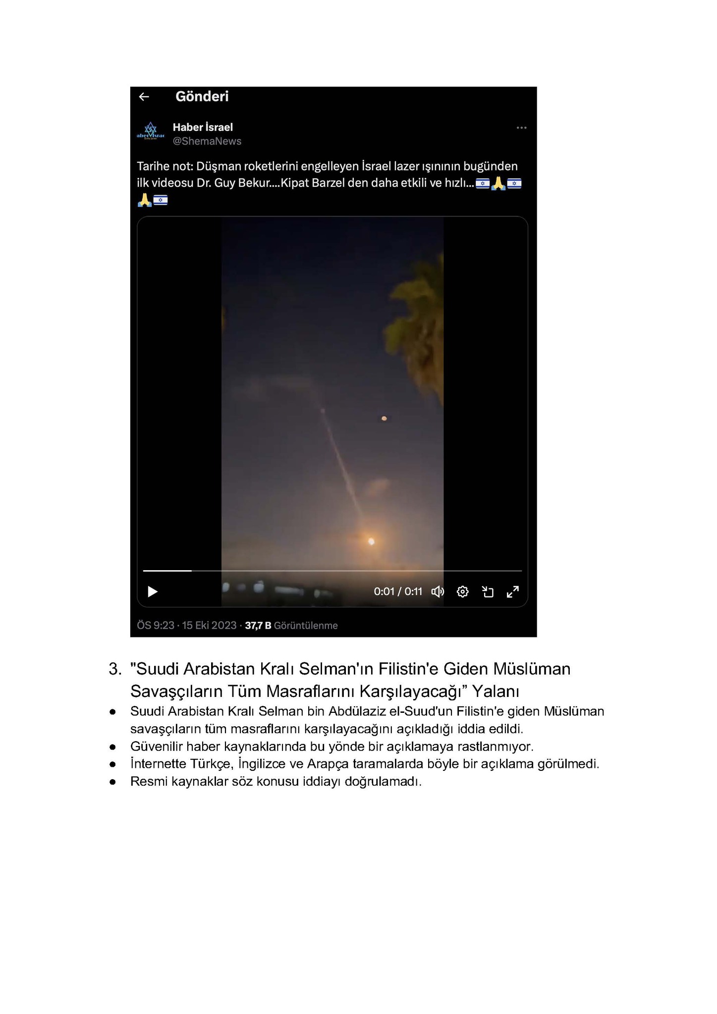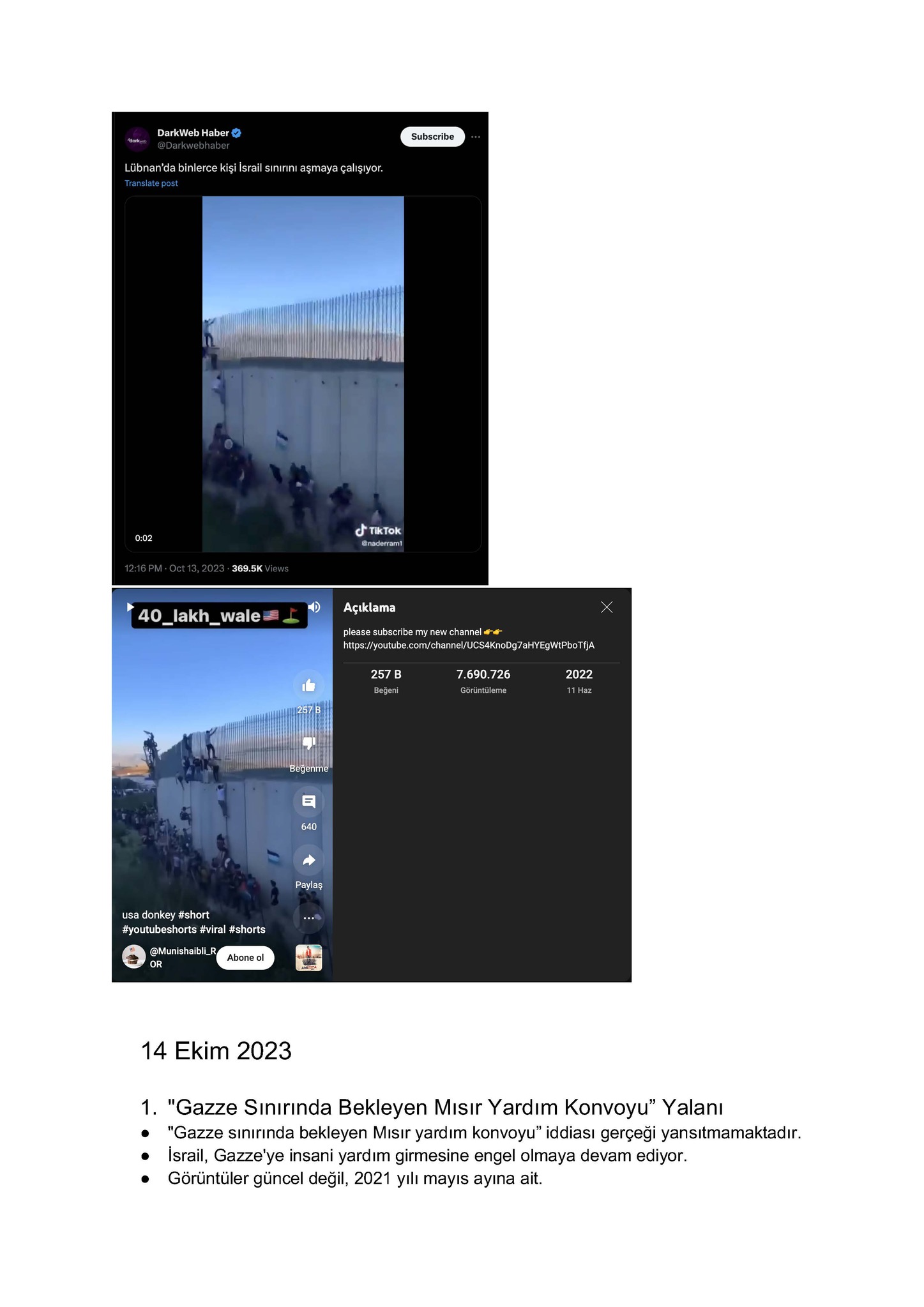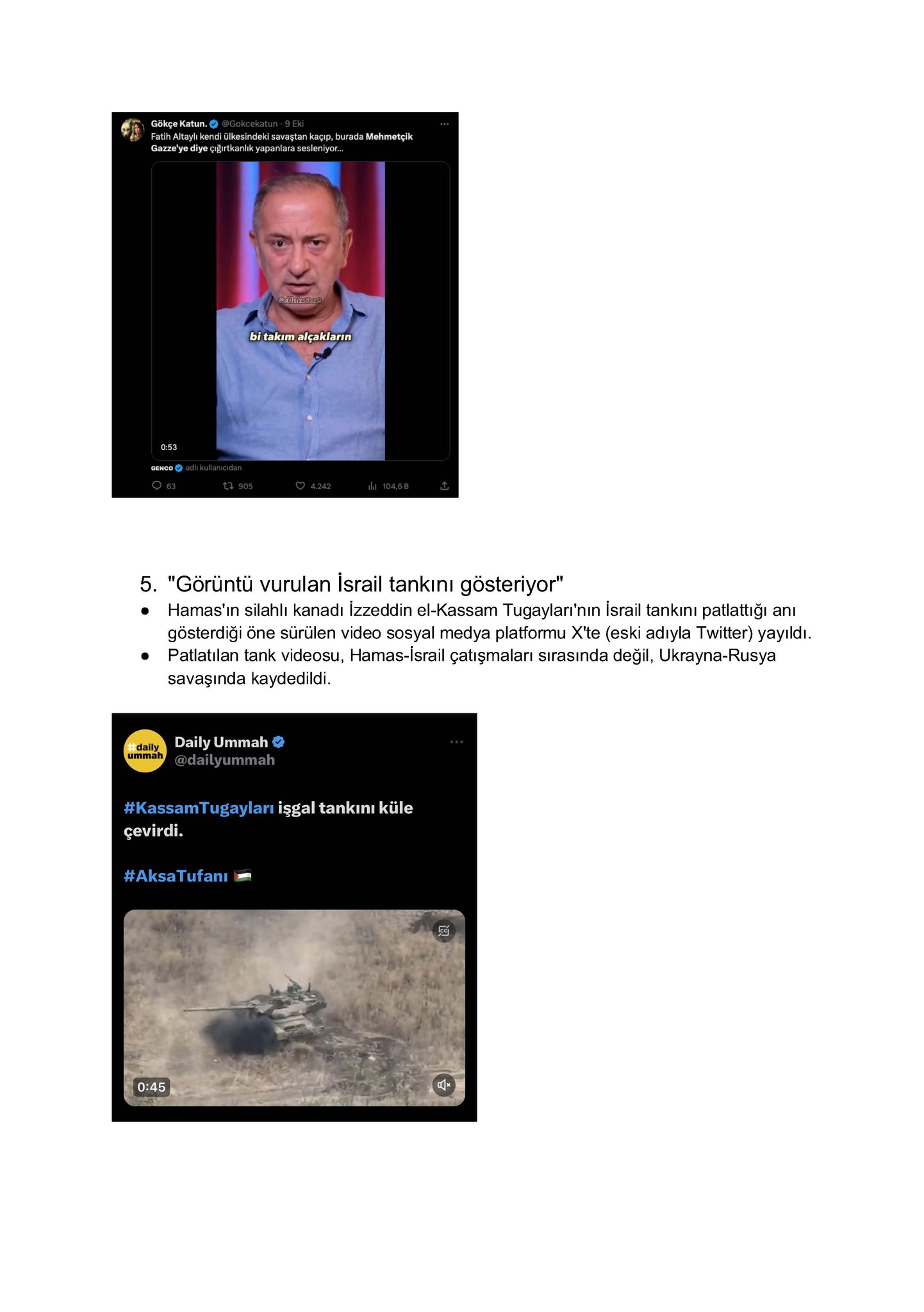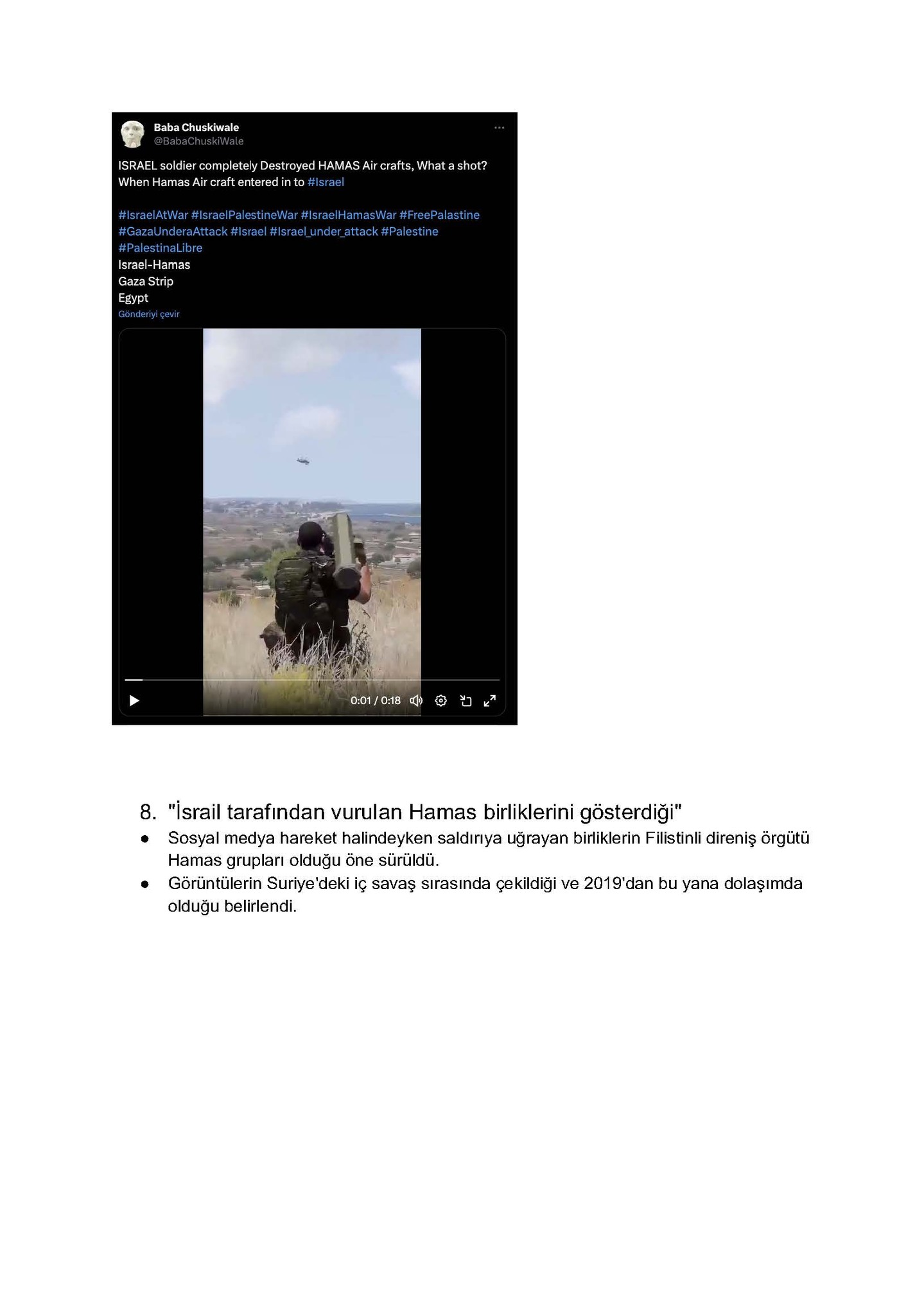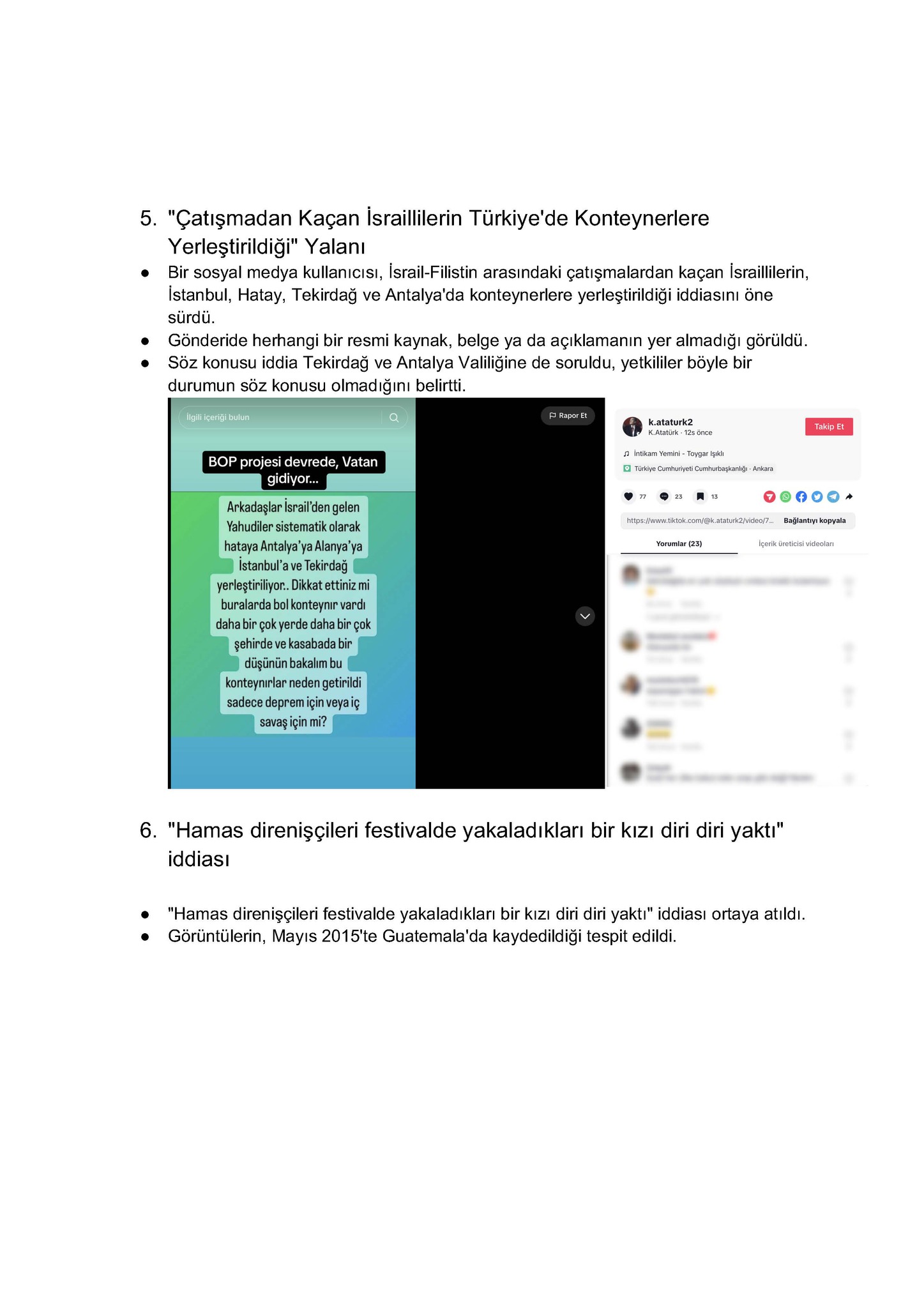 İsrail yıllardır süren Filistin'e yönelik zulmünü son yaşanan gerilimle birlikte zirveye çıkardı. Her gün Filistinlilerin üzerine bombalar yağıyor. İsrail'in Gazze'deki El Ehli Baptist Hastanesine yaptığı bombalı saldırı ise tam anlamıyla yürekleri yaktı. İsrail 500 masum sivili katletti. Katliamda hayatını kaybedenlerin çoğunun çocuk kadın ve yaşlılar olduğu açıklandı. Öte yandan her kanlı saldırının ardından manipülasyonlarla olayları örtbas etmeye çalışan İsrail ile sosyal medyada İsrail'i aklamaya çalışan hesapların operasyonları İletişim Başkanlığı Dezenformasyonla Mücadele Merkezi tarafından tek tek ifşa edildi. İşte Gazze saldırılarında yalanlar ve gerçekler...