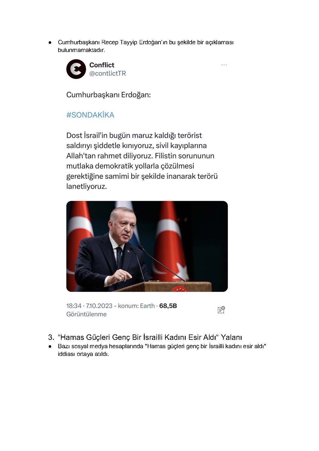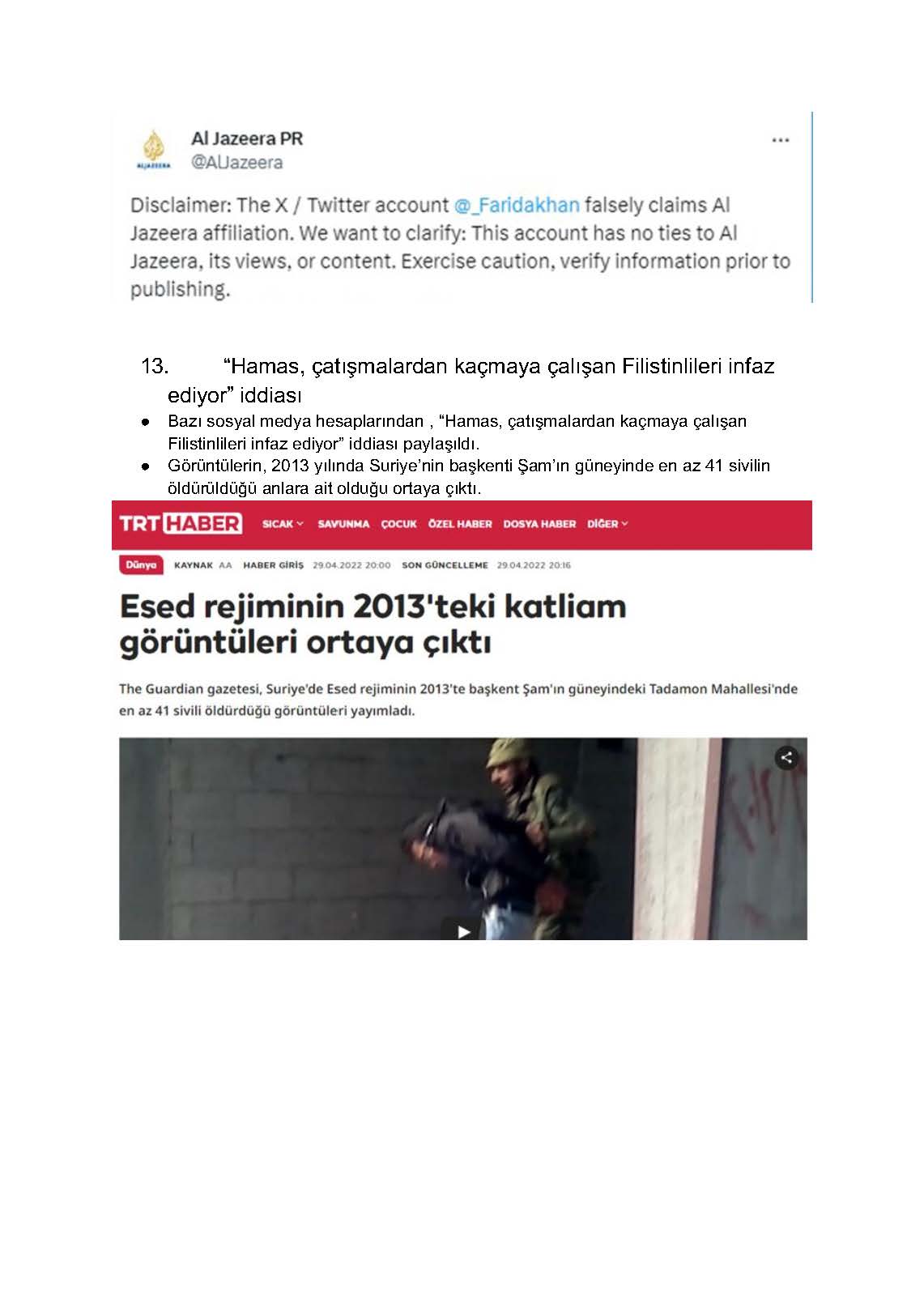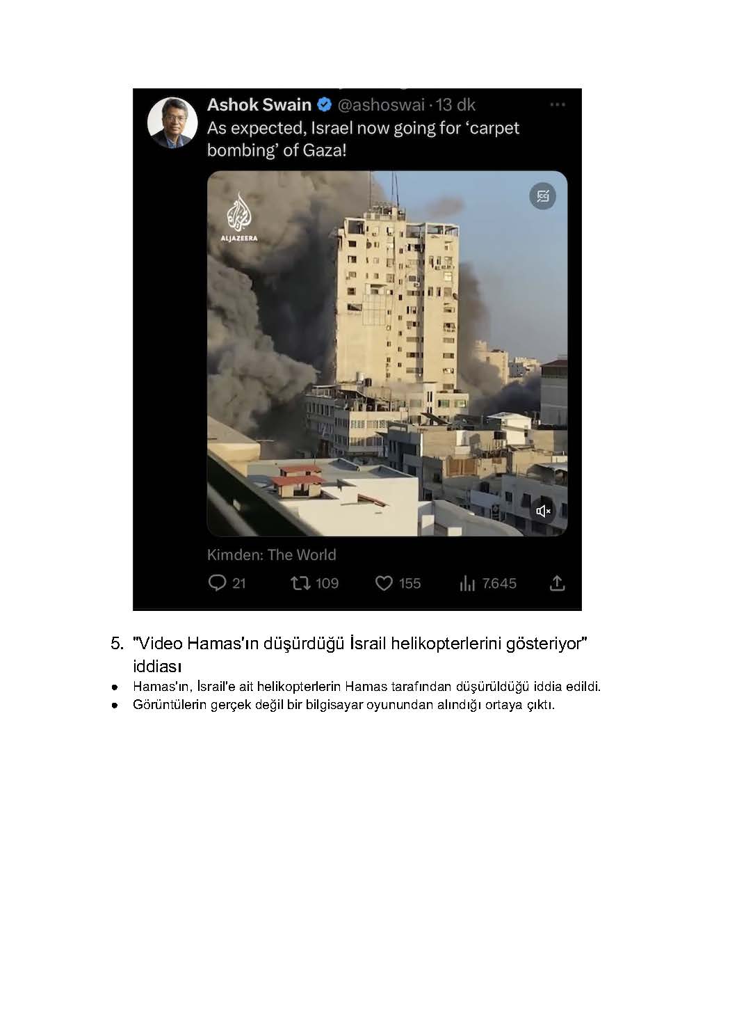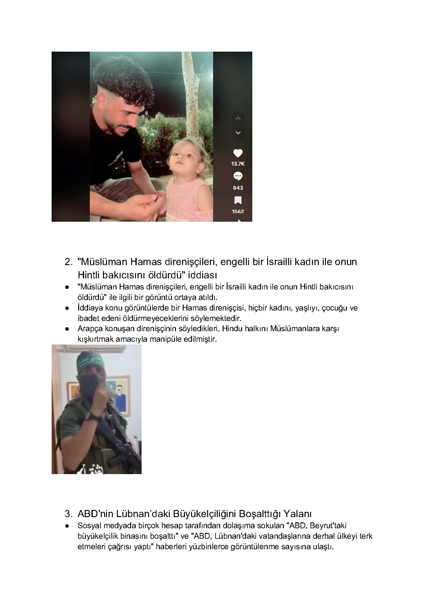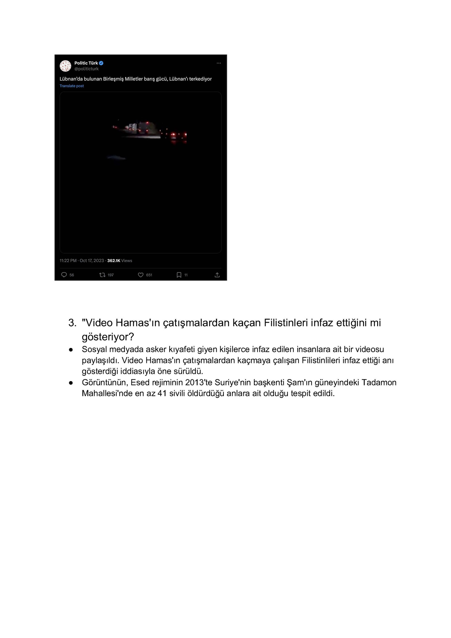 İsrail yıllardır süren Filistin'e yönelik zulmünü son yaşanan gerilimle birlikte zirveye çıkardı. Her gün Filistinlilerin üzerine bombalar yağıyor. İsrail'in Gazze'deki El Ehli Baptist Hastanesine yaptığı bombalı saldırı ise tam anlamıyla yürekleri yaktı. İsrail 500 masum sivili katletti. Katliamda hayatını kaybedenlerin çoğunun çocuk kadın ve yaşlılar olduğu açıklandı. Öte yandan her kanlı saldırının ardından manipülasyonlarla olayları örtbas etmeye çalışan İsrail ile sosyal medyada İsrail'i aklamaya çalışan hesapların operasyonları İletişim Başkanlığı Dezenformasyonla Mücadele Merkezi tarafından tek tek ifşa edildi. İşte Gazze saldırılarında yalanlar ve gerçekler...