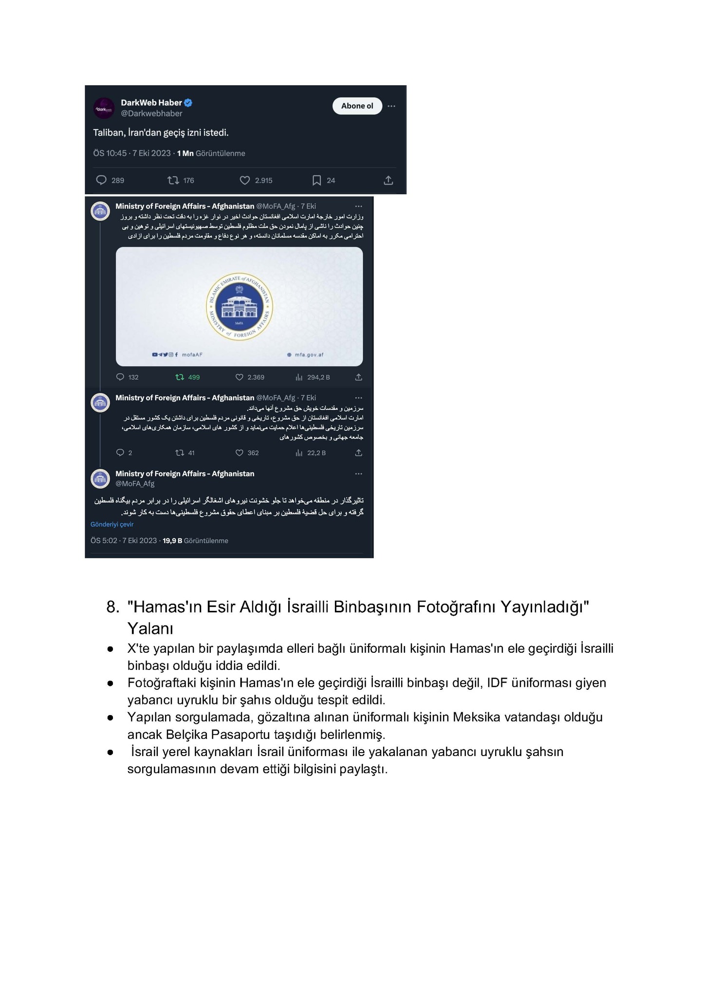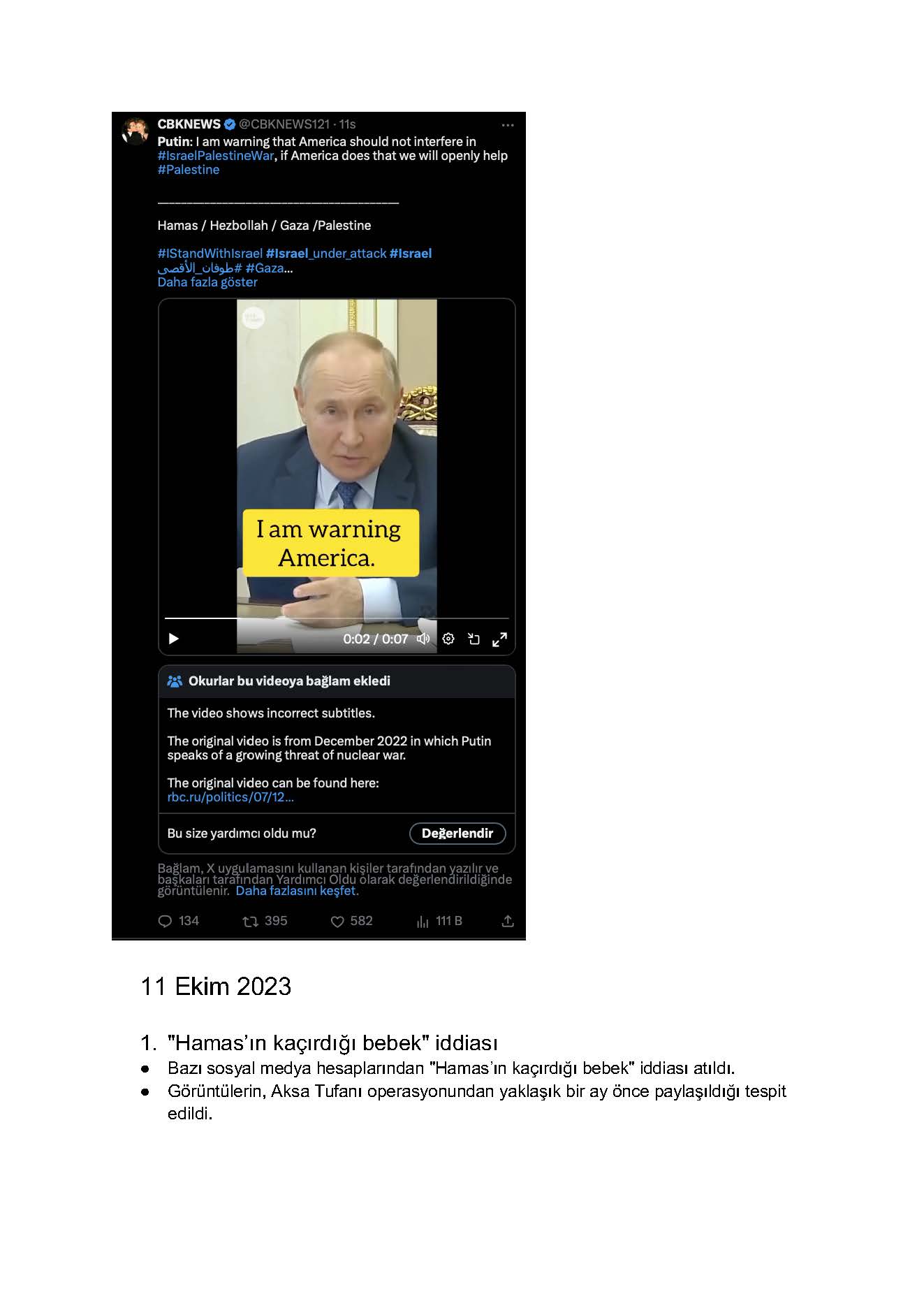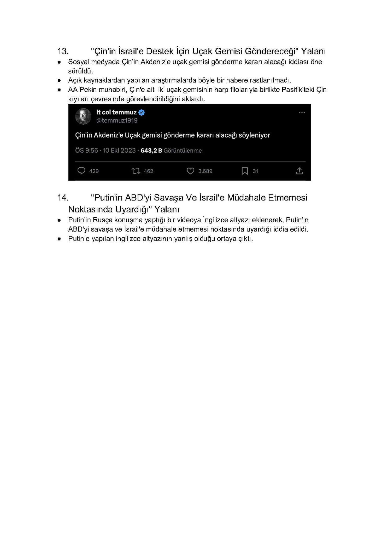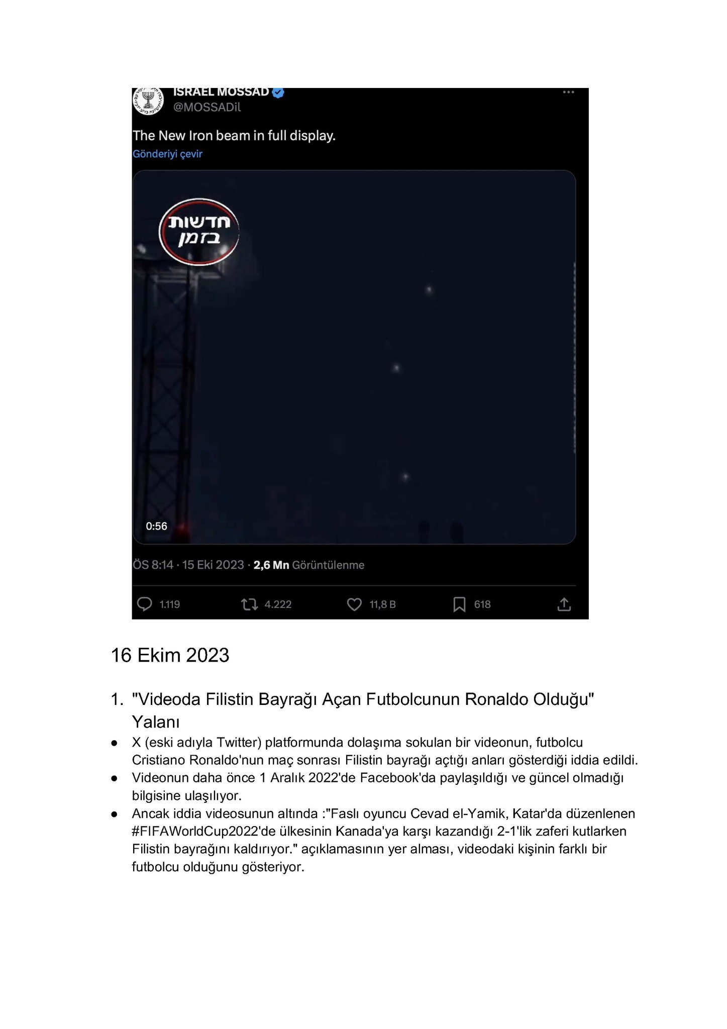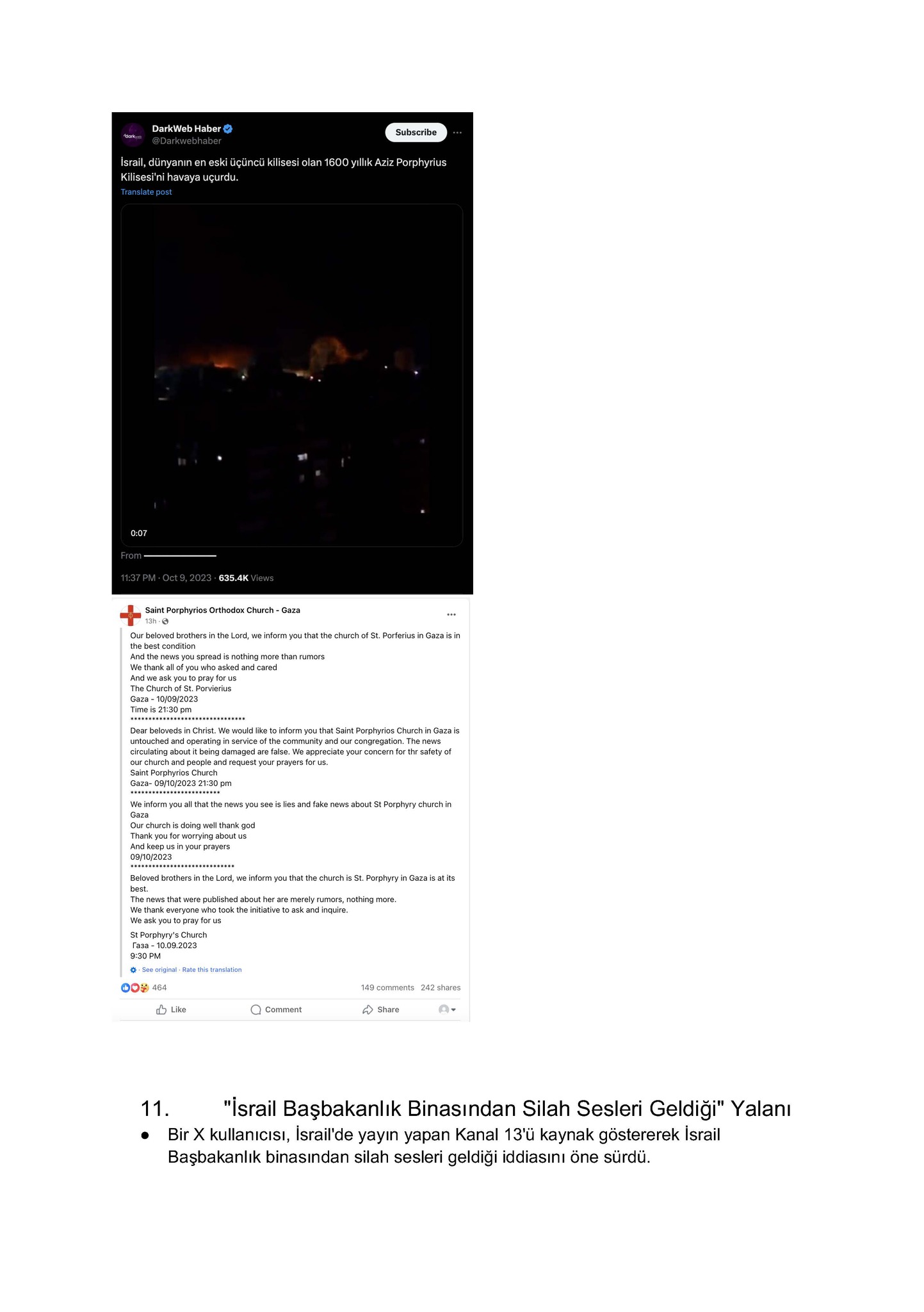 İsrail yıllardır süren Filistin'e yönelik zulmünü son yaşanan gerilimle birlikte zirveye çıkardı. Her gün Filistinlilerin üzerine bombalar yağıyor. İsrail'in Gazze'deki El Ehli Baptist Hastanesine yaptığı bombalı saldırı ise tam anlamıyla yürekleri yaktı. İsrail 500 masum sivili katletti. Katliamda hayatını kaybedenlerin çoğunun çocuk kadın ve yaşlılar olduğu açıklandı. Öte yandan her kanlı saldırının ardından manipülasyonlarla olayları örtbas etmeye çalışan İsrail ile sosyal medyada İsrail'i aklamaya çalışan hesapların operasyonları İletişim Başkanlığı Dezenformasyonla Mücadele Merkezi tarafından tek tek ifşa edildi. İşte Gazze saldırılarında yalanlar ve gerçekler...