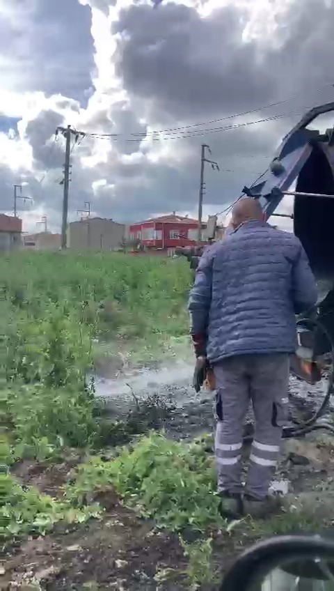 Tekirdağ Çevre, Şehircilik ve İklim Değişikliği Müdürlüğü ekipleri atığın bırakıldığı bölgede inceleme yaparak numune aldı.