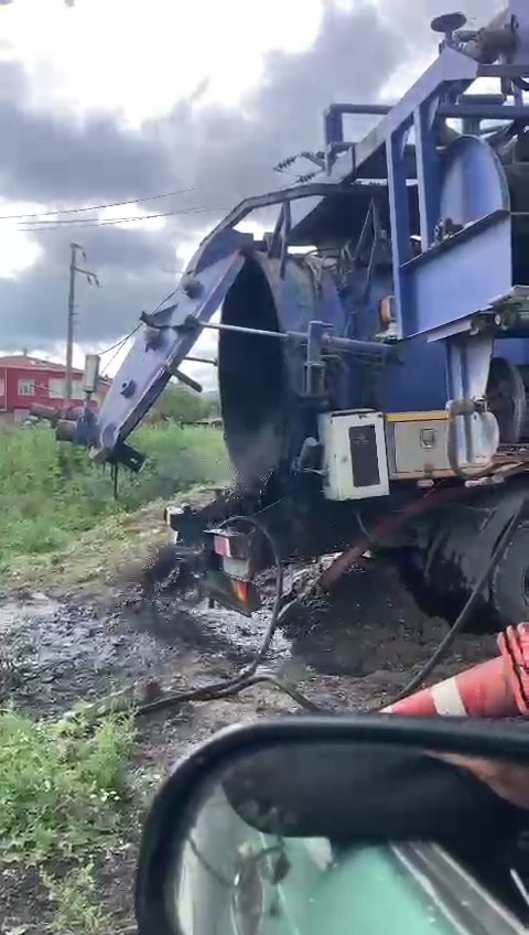 Tekirdağ Büyükşehir Belediyesi Su ve Kanalizasyon İdaresi'ne (TESKİ) ait aracın Ergene ilçesinde dereye atık boşaltırken görüntülendi.