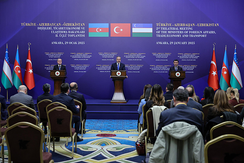 Türkiye, Azerbaycan ve Özbekistan Dışişleri, Ticaret, Ekonomi ve Ulaştırma bakanlarının katılımıyla düzenlenen '3'lü Mekanizma Toplantısı'nın ikincisi, Ankara'daki bir otelde gerçekleştirildi.