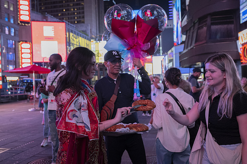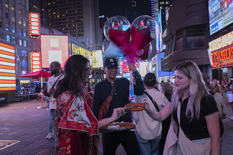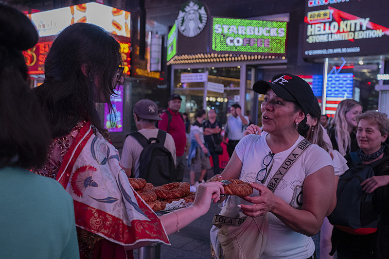 Türk simidi ve Türk çayı, "Anadoludakiler" projesinin tanıtımı çerçevesinde, Times Meydanı'nda New Yorklulara ikram edildi.