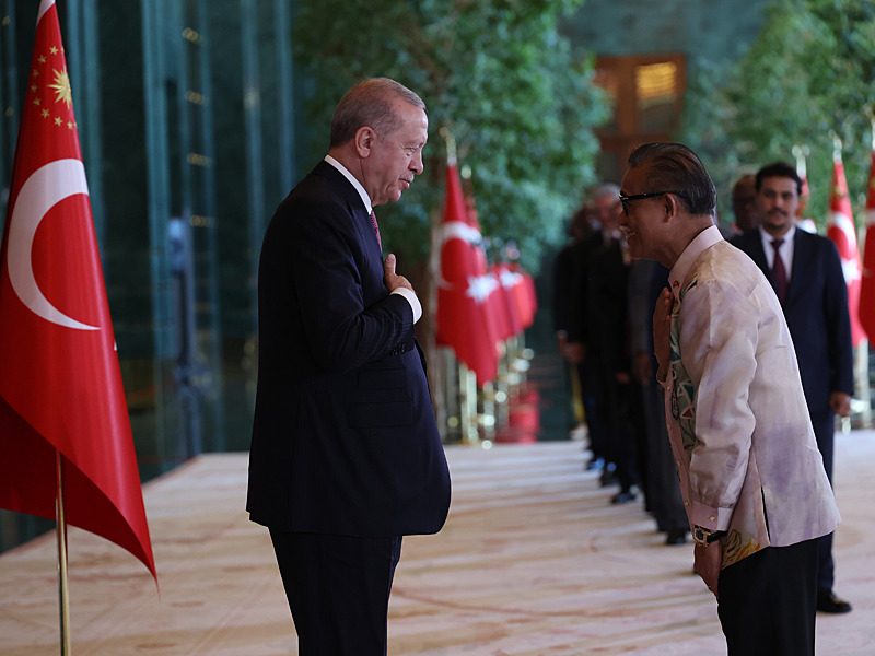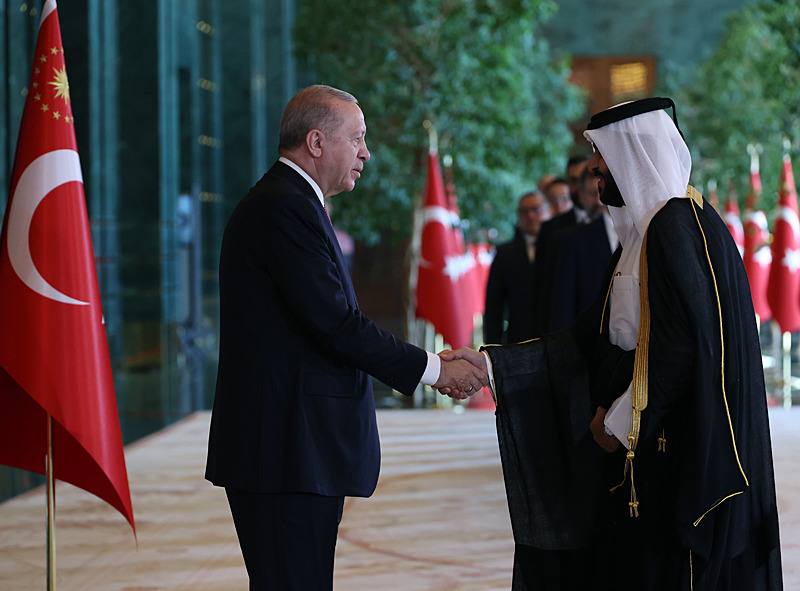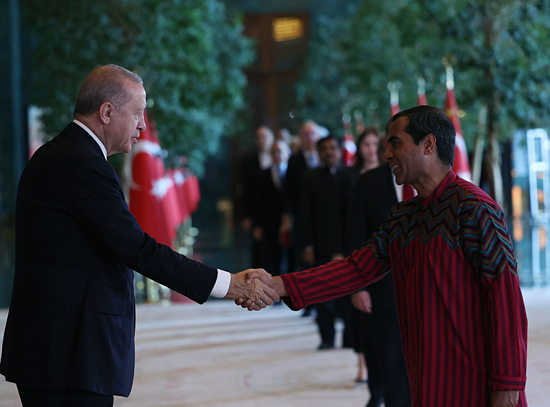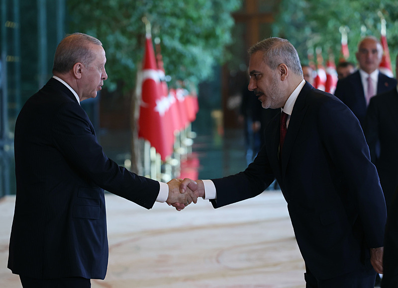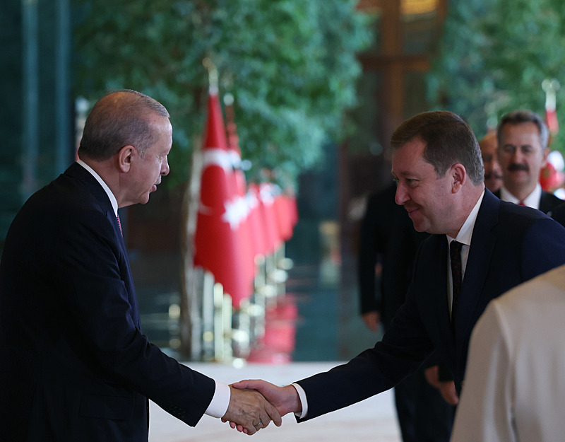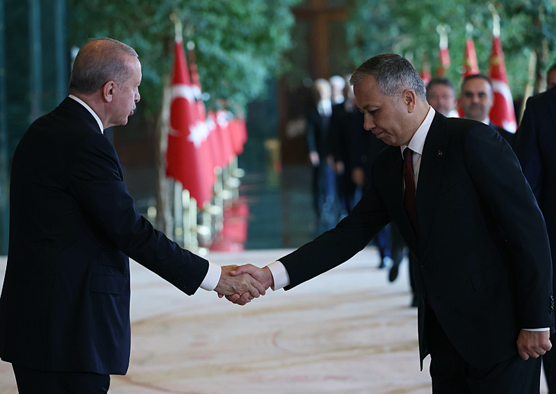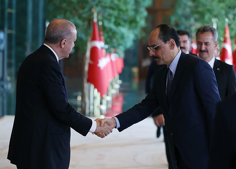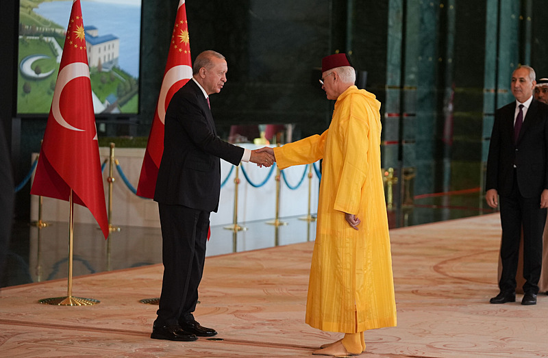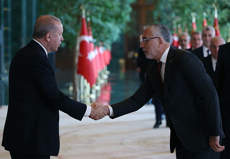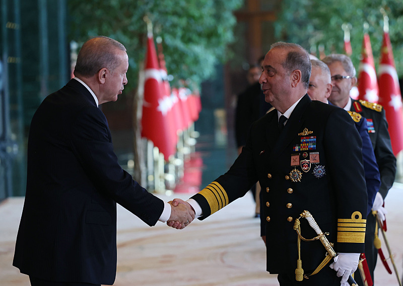 Cumhurbaşkanlığı Külliyesi ana bina girişinde düzenlenen törende; TBMM Başkanı Numan Kurtulmuş, Cumhurbaşkanı Yardımcısı Cevdet Yılmaz, AK Parti TBMM Grup Başkanı Abdullah Güler, Yargıtay Başkanı Ömer Kerkez, Danıştay Başkanı Zeki Yiğit, Cumhurbaşkanlığı Kabinesi üyeleri, Genelkurmay Başkanı Orgeneral Selçuk Bayraktaroğlu ve kuvvet komutanları, Diyanet İşleri Başkanı Safi Arpaguş, TBMM üyeleri, Cumhurbaşkanlığı Genel Sekreteri Hakkı Susmaz, İletişim Başkanı Burhanettin Duran, MİT Başkanı İbrahim Kalın, Savunma Sanayii Başkanı Haluk Görgün, Ankara Valisi Vasip Şahin, Ankara Büyükşehir Belediye Başkanı Mansur Yavaş, kamu kurumlarının yöneticileri, Ankara'da görevli büyükelçiler, yabancı misyon şefleri, uluslararası kuruluşların temsilcileri, Başkan Erdoğan'a tebriklerini sundu
