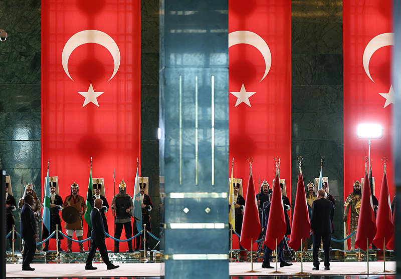 Türkiye Cumhuriyeti 102 yaşında… 29 Ekim Cumhuriyet Bayramı tüm yurtta coşkuyla kutlanırken Başkan Erdoğan, sabah Anıtkabir'i ziyaret etti. Ardından Cumhurbaşkanlığı Külliyesi'ne geçen Başkan Erdoğan Cumhuriyet'in kuruluşunun 102'nci yıl dönümünde tebrikleri kabul etti.