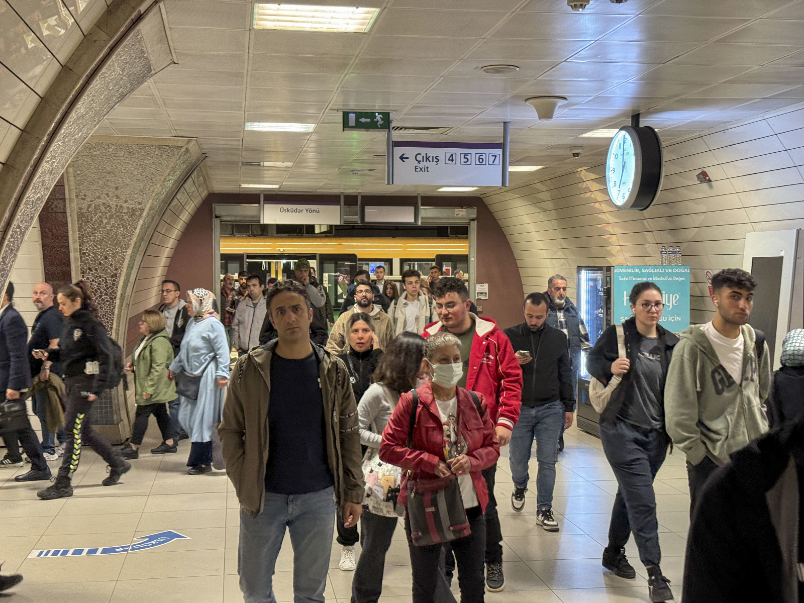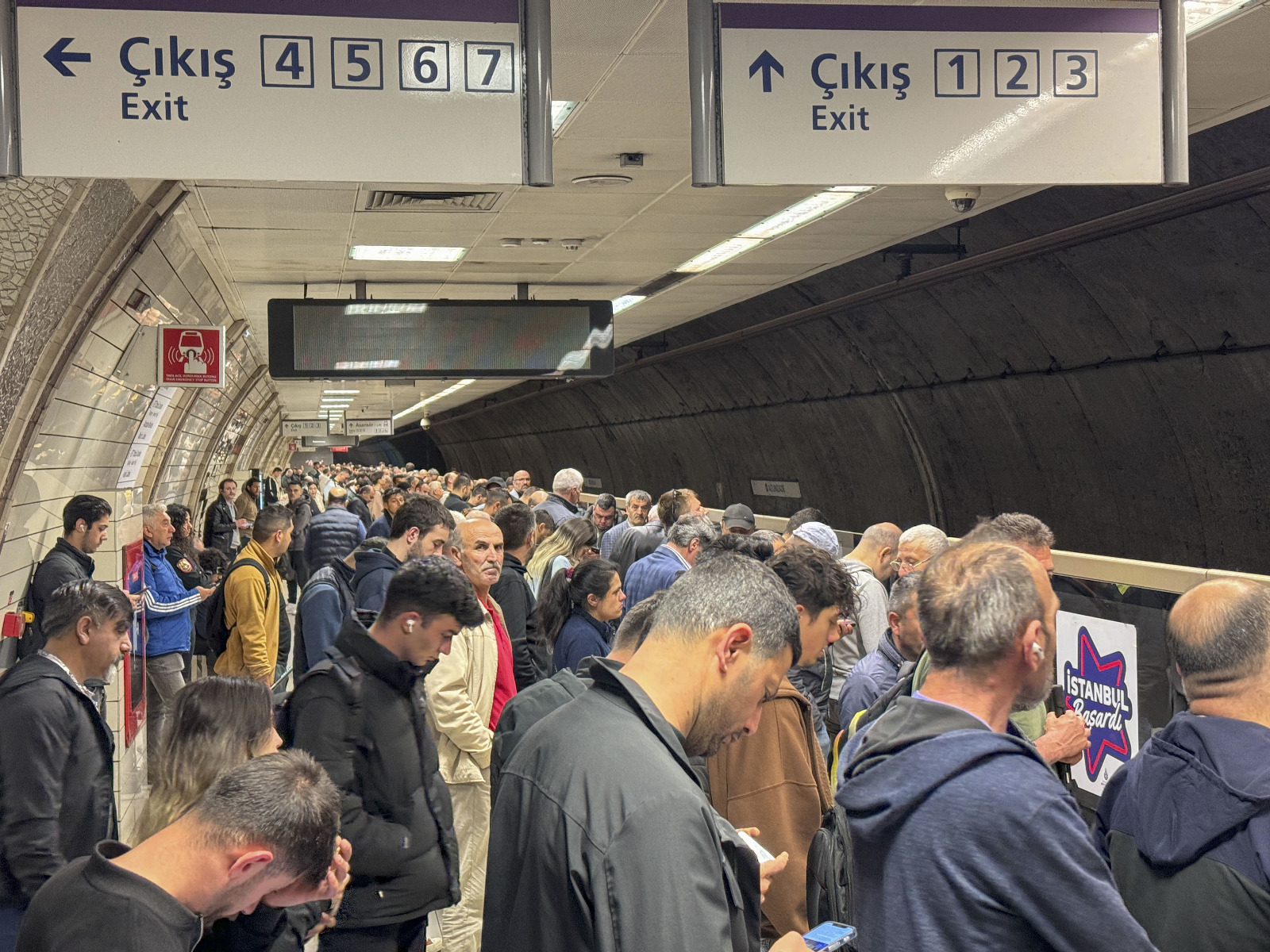 Hattın bulunduğu kata inildiğinde ise yön tabelaların önünde bekleyen görevliler megafonla duyurular yaparak vatandaşları gidecekleri tarafa yönlendiriyor.