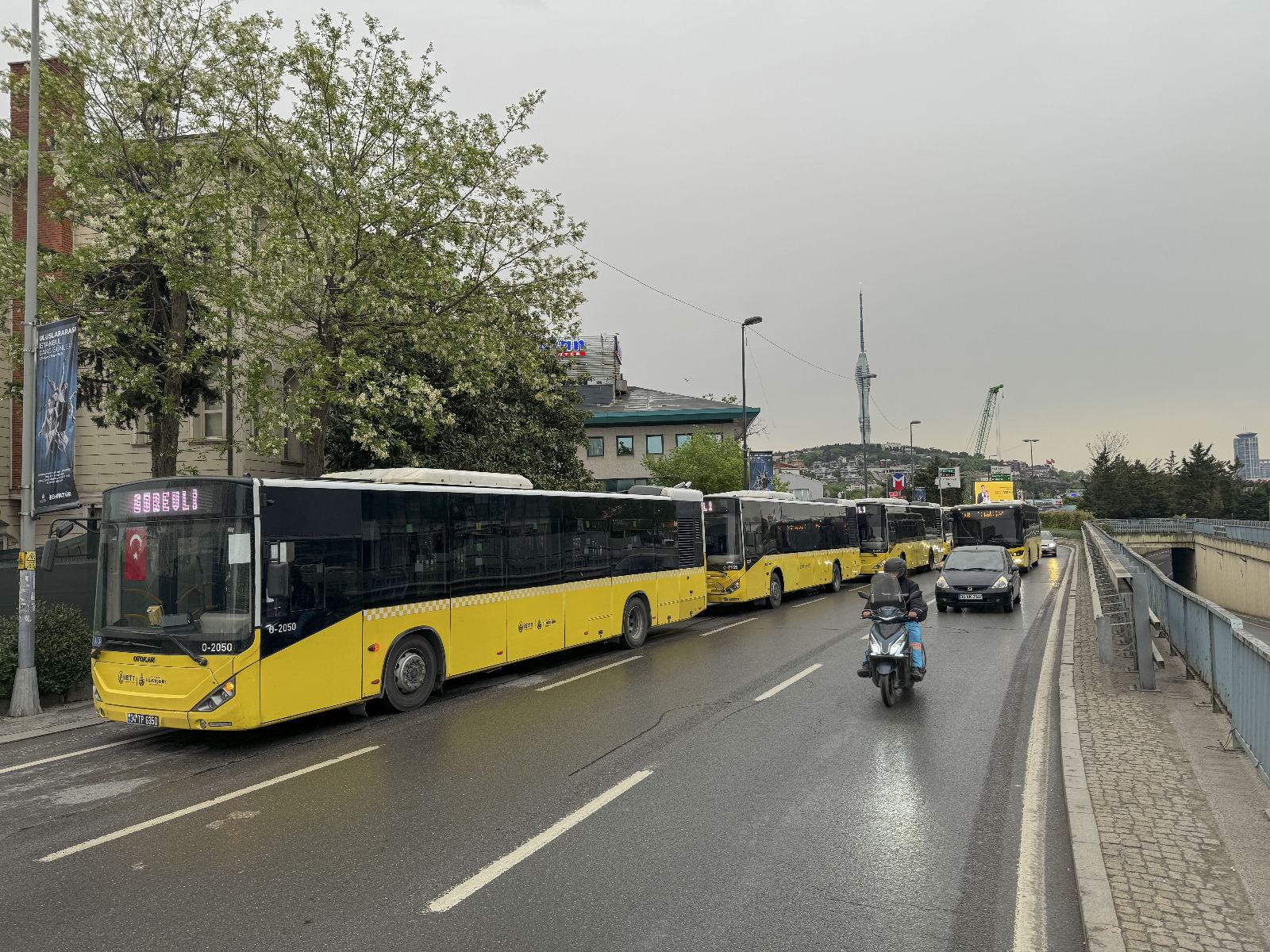 Duraktaki süreli ekran tabelaları çalışmazken vatandaşlar arasında megafonla dolaşan bir görevli seferlerin 15 dakika aralıklarla yapıldığı bilgisini veriyor.