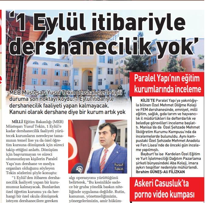 2013 yılında milli iradeye karşı topyekün saldırıya geçen FETÖ'ye en büyük darbe 2014 yılında dersanelerin kapatılmasıyla indirilmişti. Cumhurbaşkanı Erdoğan'ın talimatı ile FETÖ'nün insan kaynağı olarak kullandığı dersaneler artık tarihe karışmıştı. FETÖ ve CHP medyası bu karara sert tepki gösterdi. Milli Eğitim Bakanlığı'nda bu tepkileri göğüsleyen bir isim vardı; Dönemin Milli Eğitim Bakanlığı Müsteşarı Doç. Dr. Yusuf Tekin.