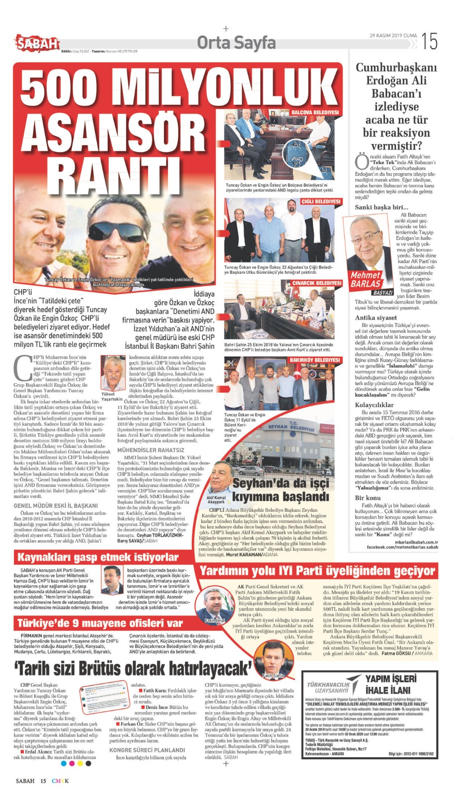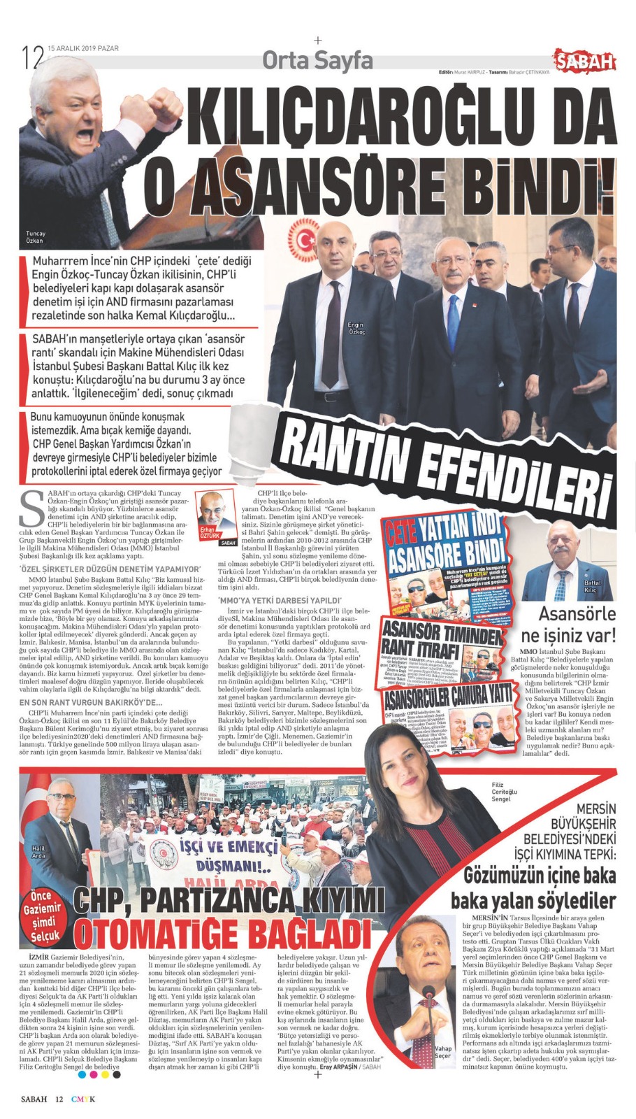Bunu da vermedim. Bizi haraca bağlıyorlardı. CHP'nin Genel Başkan Yardımcısı And Asansör ya da Güneş Medya'ya para toplamak için belediyelere gider mi?" ifadelerine kullandı.