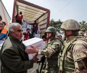 Afrin şehir merkezinde ay yıldızlı bayrağın dalgalanmasının ardından bölgeye Türkiye yardım elini uzattı. AFAD koordinasyonunda STK'lar ve Mehmetçik, şehir merkezine ve köylere yardım ulaştırmaya devam ediyor. Başta sıcak yemek olmak üzere halka gıda yardımı yapılıyor.