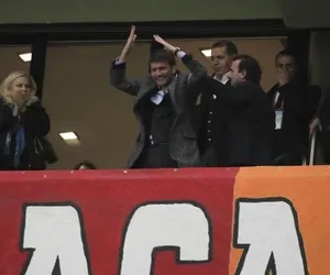 Dursun Özbek'in locasına yakın olan ve aşağıda bulunan taraftarlar, Özbek'in locasına yönelerek tepki gösterdi.