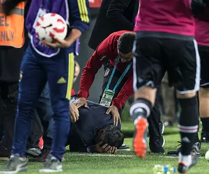 Fenerbahçe-Beşiktaş derbisinde sahaya atılan yabancı madde kafasına isabet eden Şenol Güneş yerde kaldı.