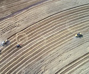Tarlanın merkezini esas alan, yarı çap uzunluğundaki hareketli robotik sulama sistemine göre ekimin yapıldığı dairesel tarlalar, geometrik desenleriyle görsel şölen oluşturuyor. Devasa büyüklüğe sahip hububat ekili bir tarlada hasadı 6 biçerdöver 10 saatlik sürede gerçekleştirdi. Havadan çekilen görüntülerde tarladaki biçerdöver, kamyon ve traktörler buğday tanesi gibi görünüyor.