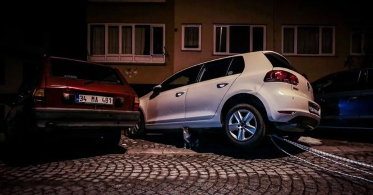 Duvarın çökmesiyle oluşan gürültüye uyanan apartman sakinleri, durumu polis ve itfaiye ekiplerine bildirdi. Olay yerine gelen ekipler askıda kalan araçların kurtarılması için çalışma başlattı.