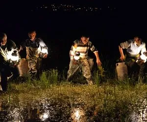 Kayseri'nin Yahyalı ilçesinde gece ellerindeki gaz lambası ve bellerine bağladıkları bidonlarla saatlerce sazlık alanda dolaşan kurbağa avcıları görenleri şaşırtıyor. Bir gece boyunca sazlık alanda kilolarca kurbağa toplayan avcılar 2018 yılının ilk 5 ayında 26 bin 300 kilo kurbağa topladı.