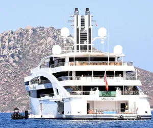 Dünyaca ünlü Kazak milyarder Alijan Ibragimov'un (64) 'I Dynasty' isimli ultra lüks motoryatı, Bodrum'a getirildi. 101 metre uzunluğundaki motoryat, deniz trafiğindeki yoğunluk nedeniyle uygun yer bulamayınca 2 saatlik arayışın ardından Yalıkavak açıklarına demirlendi.
