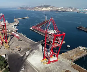 Aliağa'da bulunan özel bir limana yurt dışından gelen vincin parçaları burada birleştirildi. İşlemin ardından 90 metre yüksekliğe, 2 bin ton ağırlığa, 15 metre ayak açıklığına ulaşan vinç, taşıma işlemi için birbirine entegre 3 modüler dorseye yüklendi.