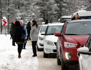 Yoğun kar yağışının etkili olduğu Abant Tabiat Parkı yolunda yüzlerce araç mahsur kaldı.