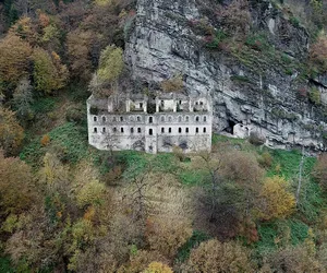 Muhteşem doğa manzarasının tam ortasında yer alan Vazelon Manastırı'nın havadan çekilen görüntülerde kaderine terk edilmiş durumu gözler önüne serilirken, manastır zaman zaman definecilerin hışmına uğramaktan kurtulamamış.