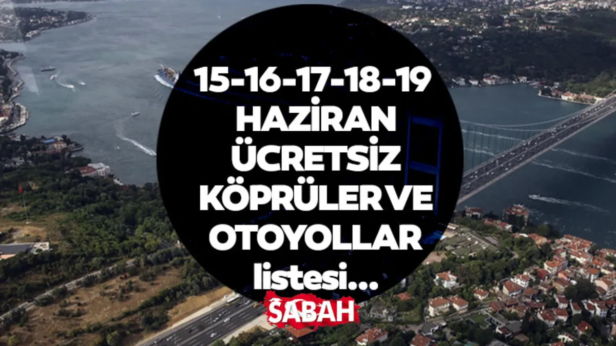 Buna göre, bayram tatili nedeniyle KGM sorumluluğu altında bulunan otoyollar ile 15 Temmuz Şehitler Köprüsü ve Fatih Sultan Mehmet Köprüsü'nden geçişler, 15 Haziran Cumartesi (Cumayı cumartesiye bağlayan gece) saat 00.00'dan başlayarak, 24 Haziran Pazartesi saat 07.00'ye kadar ücretsiz olacak.