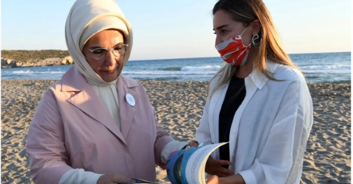 Nitekim Sıfır Atık Mavi projesinin de ünlü savunucusu olan Ercümen de kaplumbağaların denize uğurlanma merasiminde de Erdoğan'ın yanındaydı. "Deniz benim yaşam alanım korumak görevim" diyen Ercümen, çocuklara deniz altını sevdirmeyi amaçladığı ve sıfır atık projesini anlattığı bir kitabını Erdoğan için imzaladı.