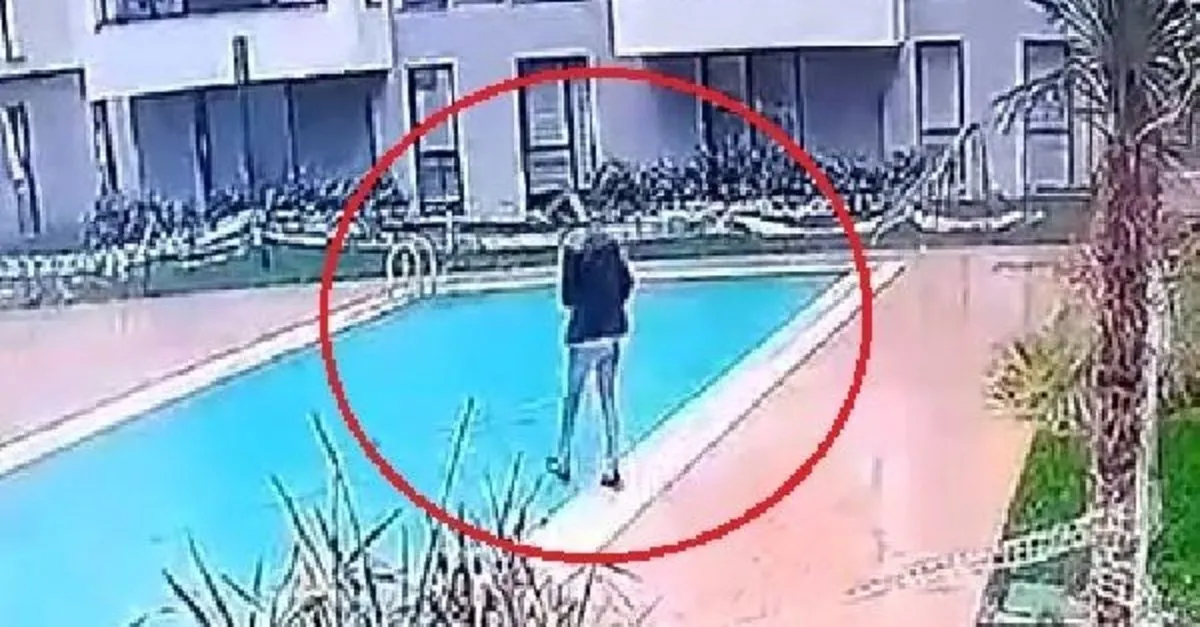 Dalgın kurye, teslimat için gittiği sitede havuza düştü | Video