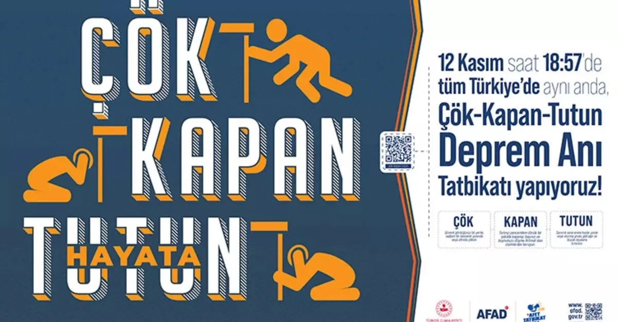 Çevre, Şehircilik ve İklim Değişikliği Bakanı Murat Kurum, devlet milletin, el ele deprem gerçeğini akıldan çıkarmadan her an hazırlıklı ve bilinçli olması gerektiğini belirterek "Çök-Kapan-Tutun" tatbikatına katılma çağrısında bulundu.