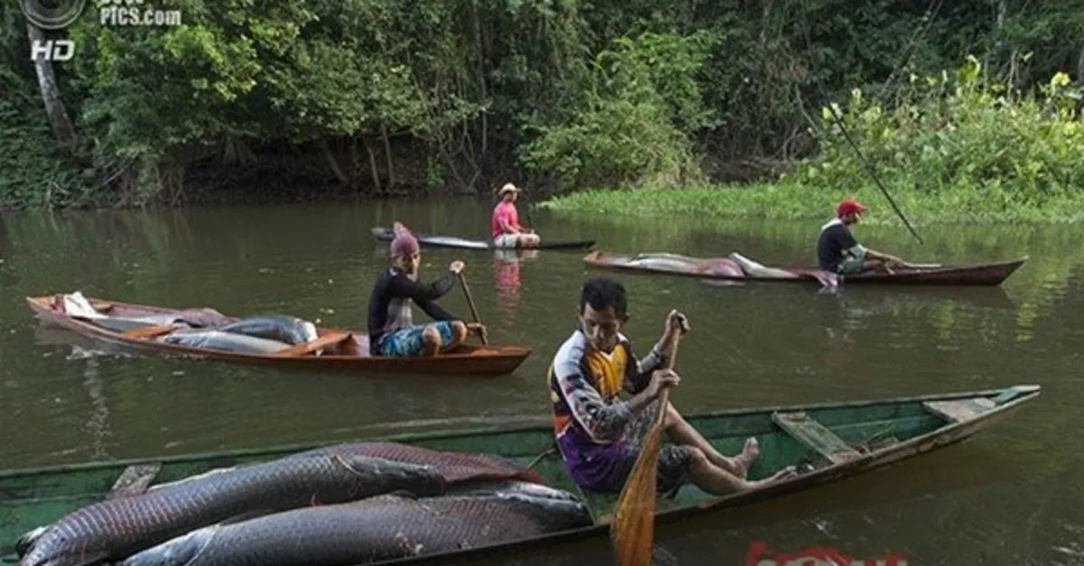 Dünyanın en büyük nehir balığı Arapayma'yı yakalıyorlar! Üstelik bakın hangi yöntemle