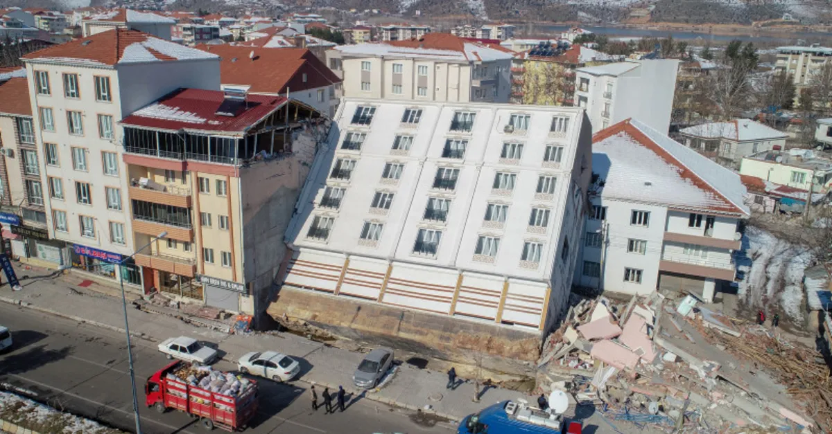 Gölbaşı ilçesinin Mimar Sinan Mahallesi'ndeki 1 Nisan Bulvarı'nda yer alan Kayı Apartmanı, Kahramanmaraş merkezli iki depremin etkisiyle temelinden çıkarak tek parça halinde arkaya doğru yan yattı.
