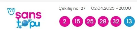 ŞANS TOPU SONUÇLARI 2 NİSAN 2025
