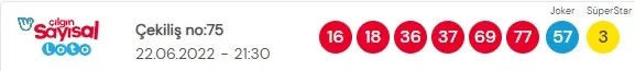 Çılgın Sayısal Loto çekiliş sonuçları, 22 Haziran şanslı numaralarla büyük ikramiye bilet sorgulama sayfası detayları şöyle;