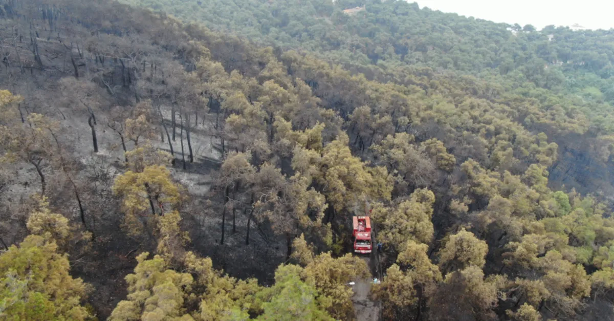Yangın sonrası 3 kişi gözaltına alınırken, 5 hektarlık alan yanarak kül oldu. Sabahın ilk ışıklarıyla birlikte, yangının neden olduğu hasar da gözler önüne serildi.