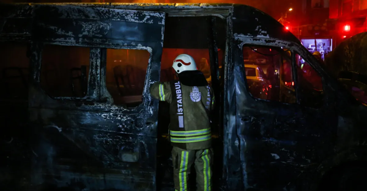 Küçükçekmece'de bir sürücü kullandığı servis minibüsü ile taşıdığı personeli evine bıraktığı sırada aracın motor kısmında yangın çıktı. Alevler kısa sürede büyüyerek tüm minibüsü sardı. Araçtaki 2 personel ile sürücü son anda kendisini dışarı attı. Yanan minibüs itfaiye ekiplerince söndürülürken minibüs kullanılamaz hale geldi. Olayda park halindeki bir otomobil de zarar gördü.